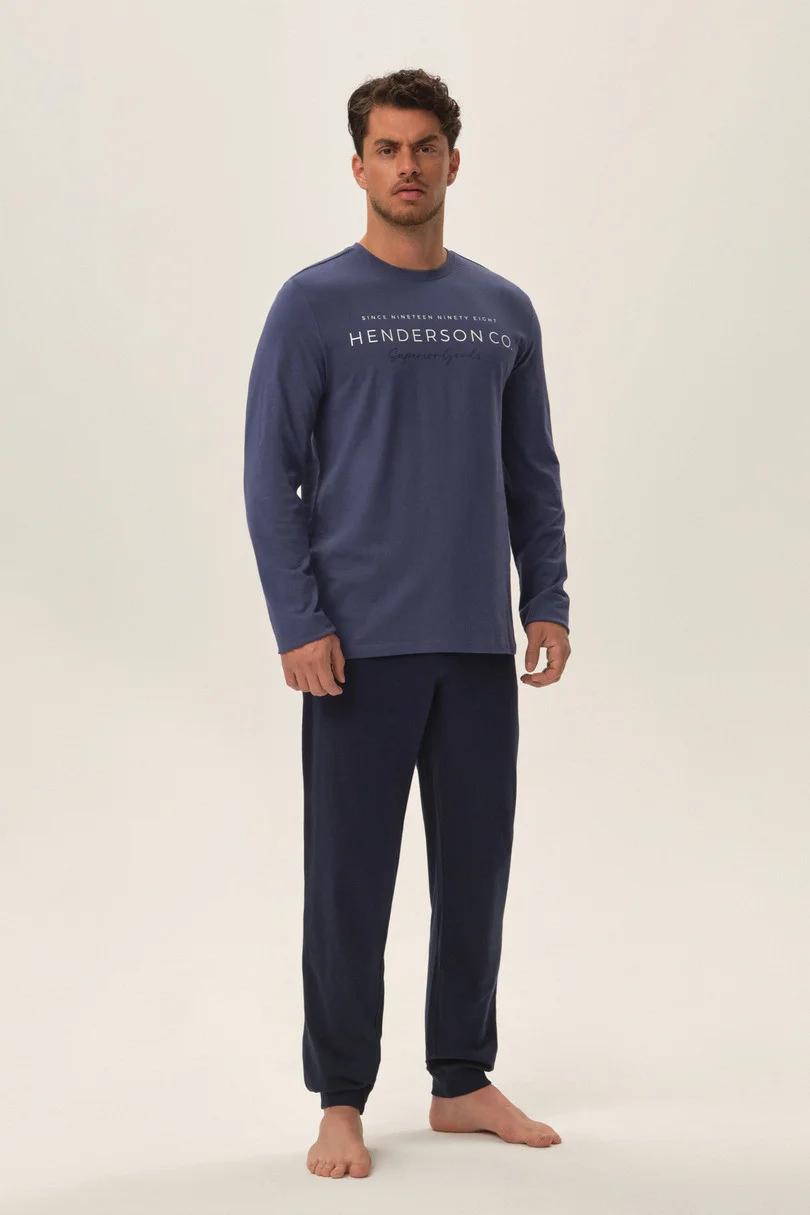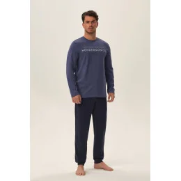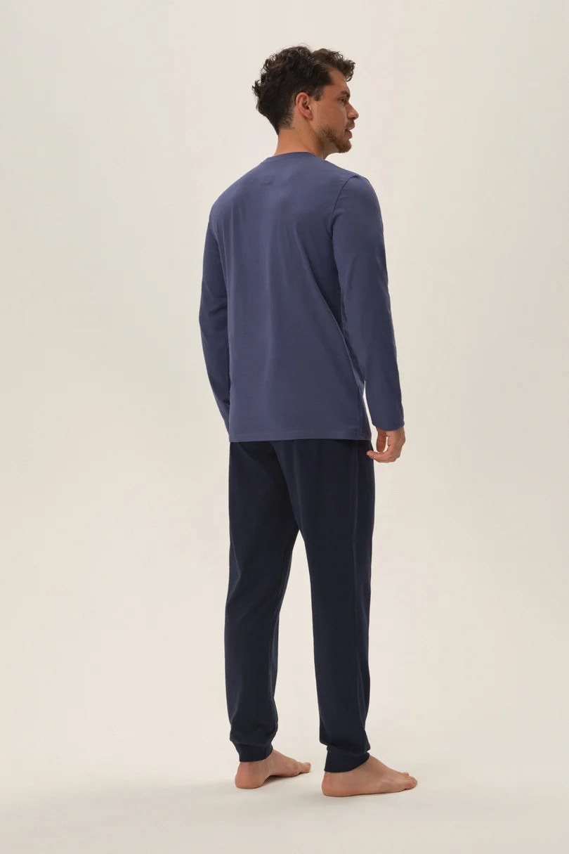 Pánské pyžamo z vysoce kvalitní bavlny. Dlouhý rukáv, dlouhé nohavice, hladké, zakončené švem. Potisk na přední straně.