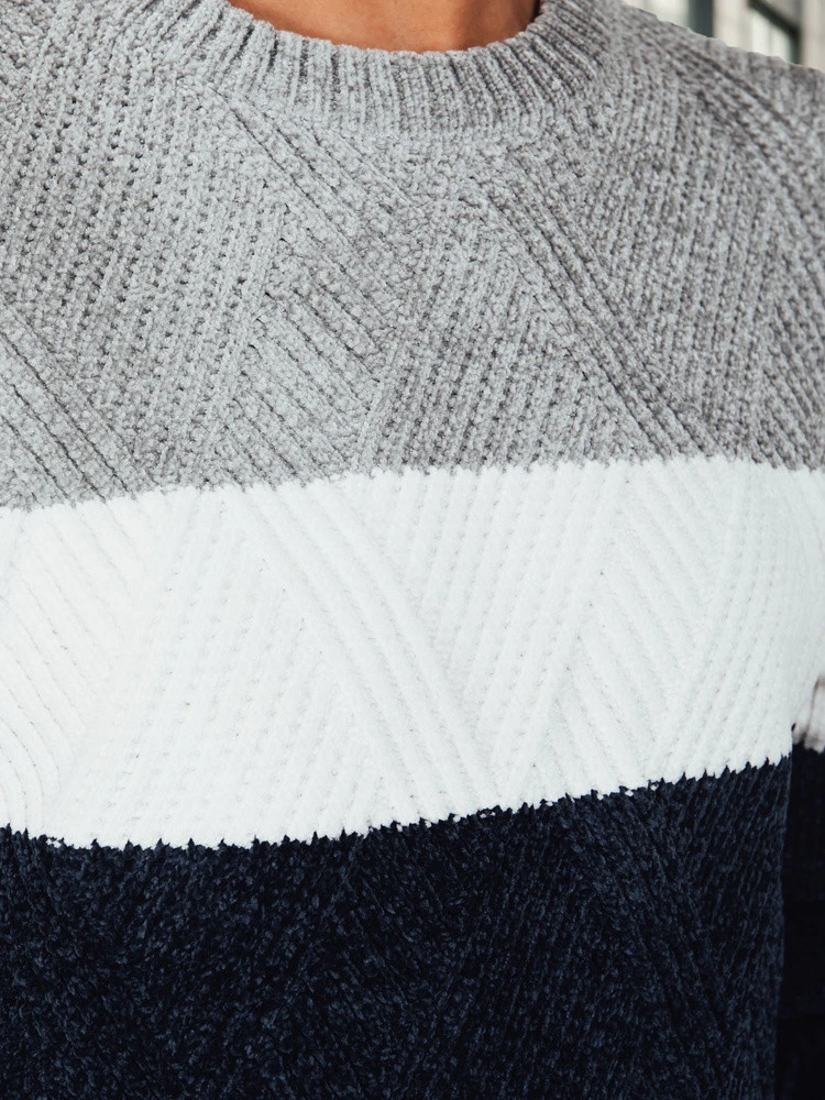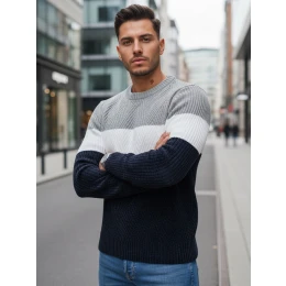 Pánský svetr s kulatým výstřihem šedý tmavě modrý Dstreet model 21994012 - FashionStreet