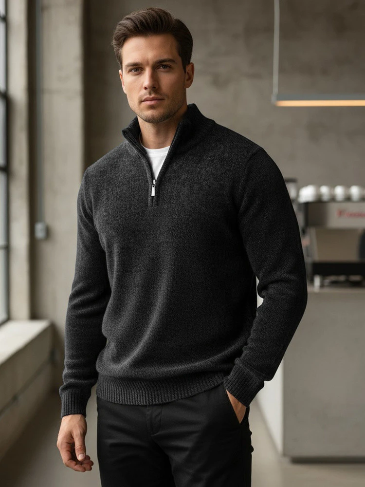 Klasický tvar svetru s praktickým stojáčkem na zip je vhodný pro každodenní i elegantnější kombinace. Měkký úpletový materiál zajistí pohodlí po celý den. Univerzální střih umožňuje snadnou kombinaci s džínami nebo látkovými kalhotami.