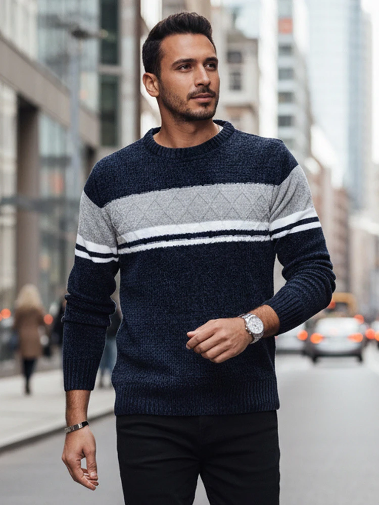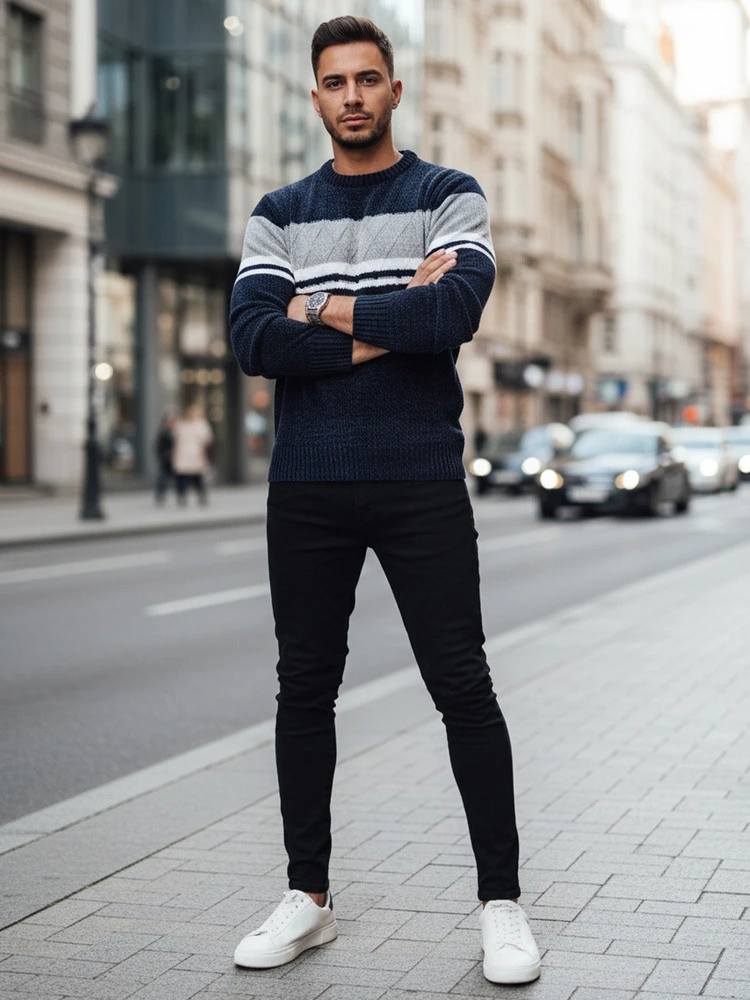 - Męski sweter wkładany przez głowę.