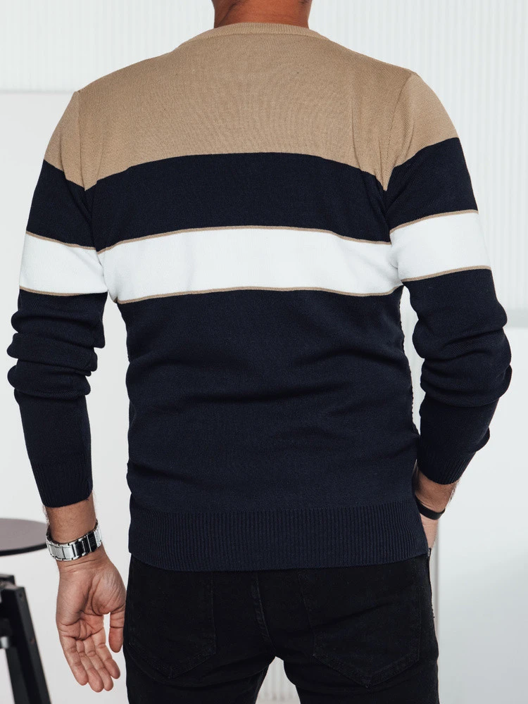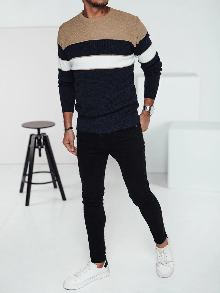 Svetr v klasickém designu s moderním nádechem, ideální pro chladnější dny. Žebrovaná tkanina a kontrastní pruhy dodávají eleganci, zatímco měkká tkanina zajišťuje celodenní pohodlí. Skvělá volba pro běžné i formálnější oblečení.