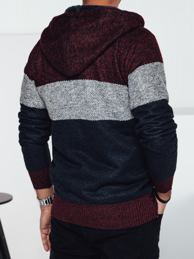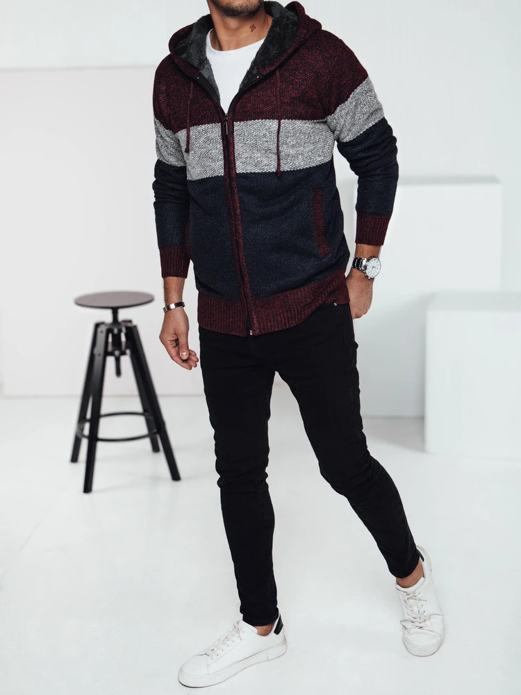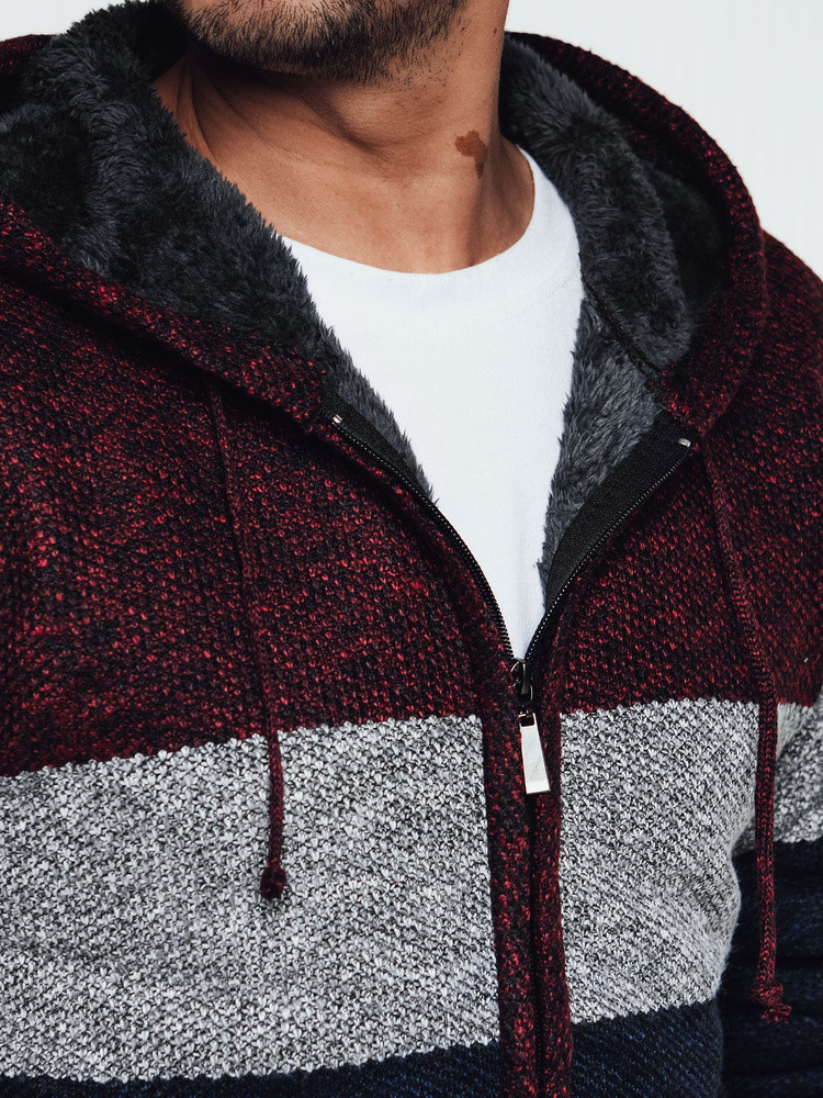 Pánský zateplený svetr s kapucí vínový FashionStreet WX2275