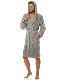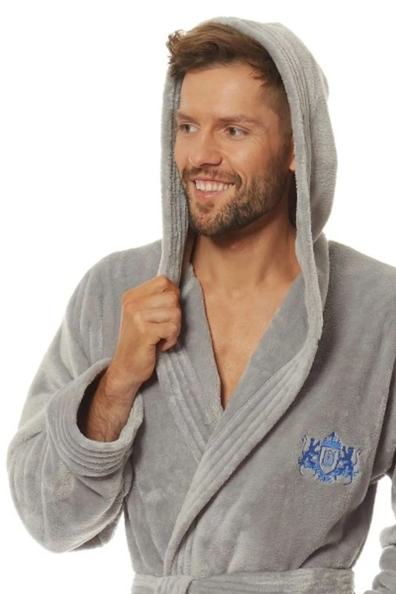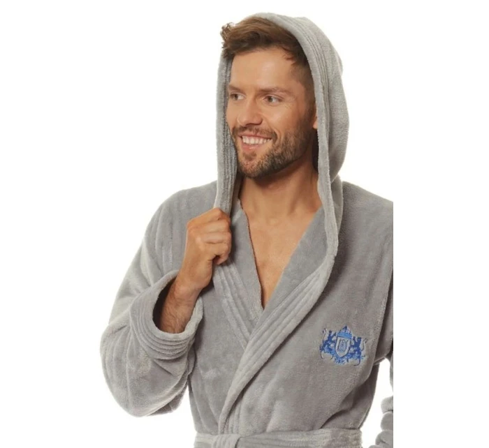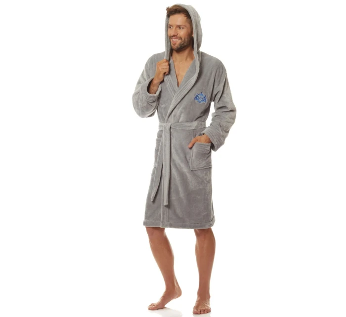 Pánský župan klasického střihu 2110 Costa L&L - z měkké tkaniny velmi příjemné na dotyk - na hrudi má malou nášivku - zavazuje se v pase páskem - na bocích našité kapsy - s kapucí - délka do poloviny stehen