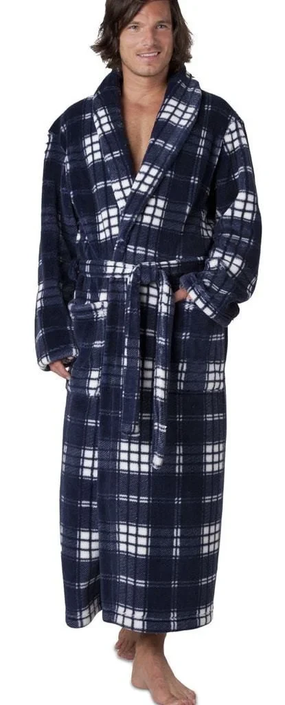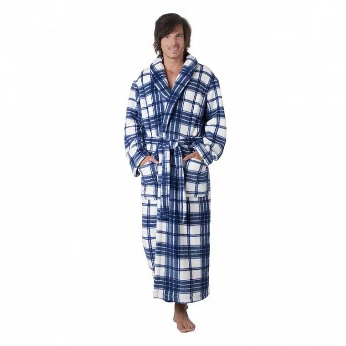 Pánský župan RYAN 2132 Vestis -je dlouhý župan klasického střihu s šálovým límcem, páskem a dvěma kapsami. V nadčasovém kostkovaném vzoru, jednoduchý, pohodlný střih poskytuje volnost pohybu a měkký, hřejivý materiál dodává chvílím volna dokonalý pocit klidu a pohody.