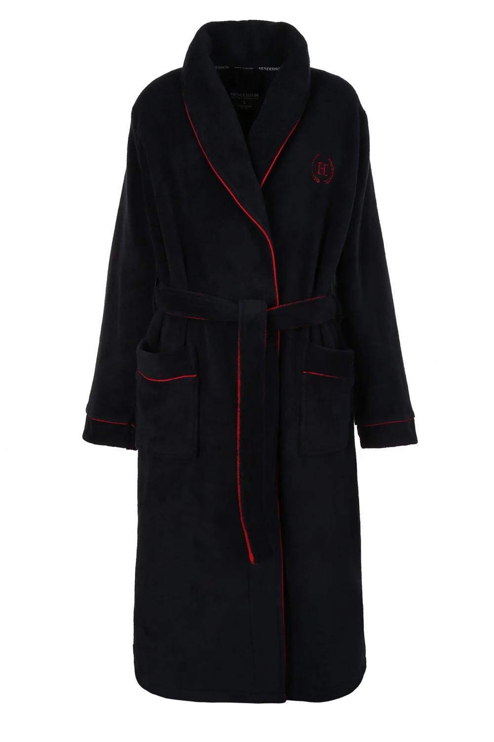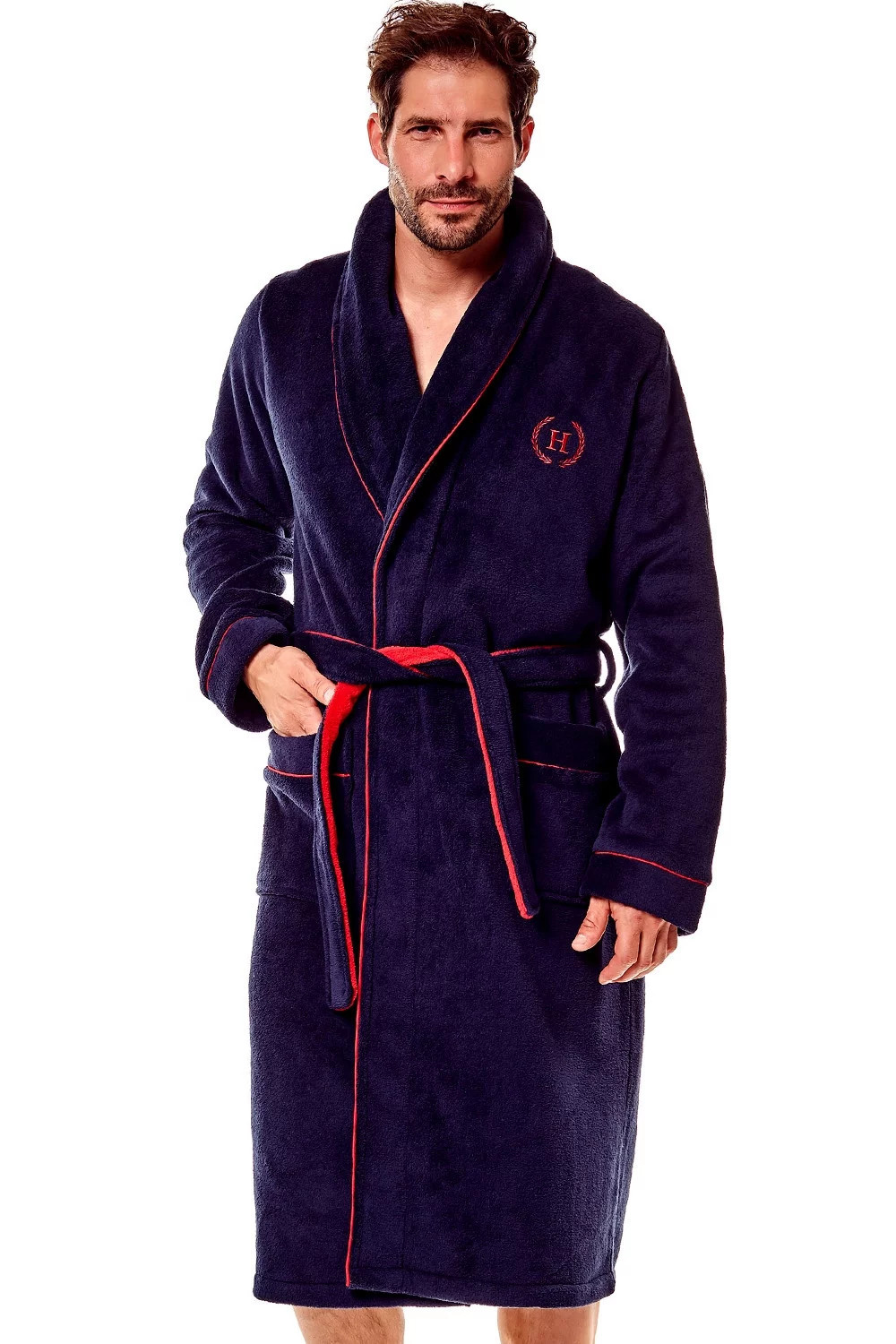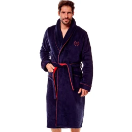 Pánský župan s šálovým límcem 36375 Got Henderson - je vyrobený z měkké, nadýchané a neobyčejně příjemné látky - v úrovni prsou je jemná výšivka v bordó barvě - župan má dvě vnější kapsy a zavazuje se v pase - délka županu je pod kolena