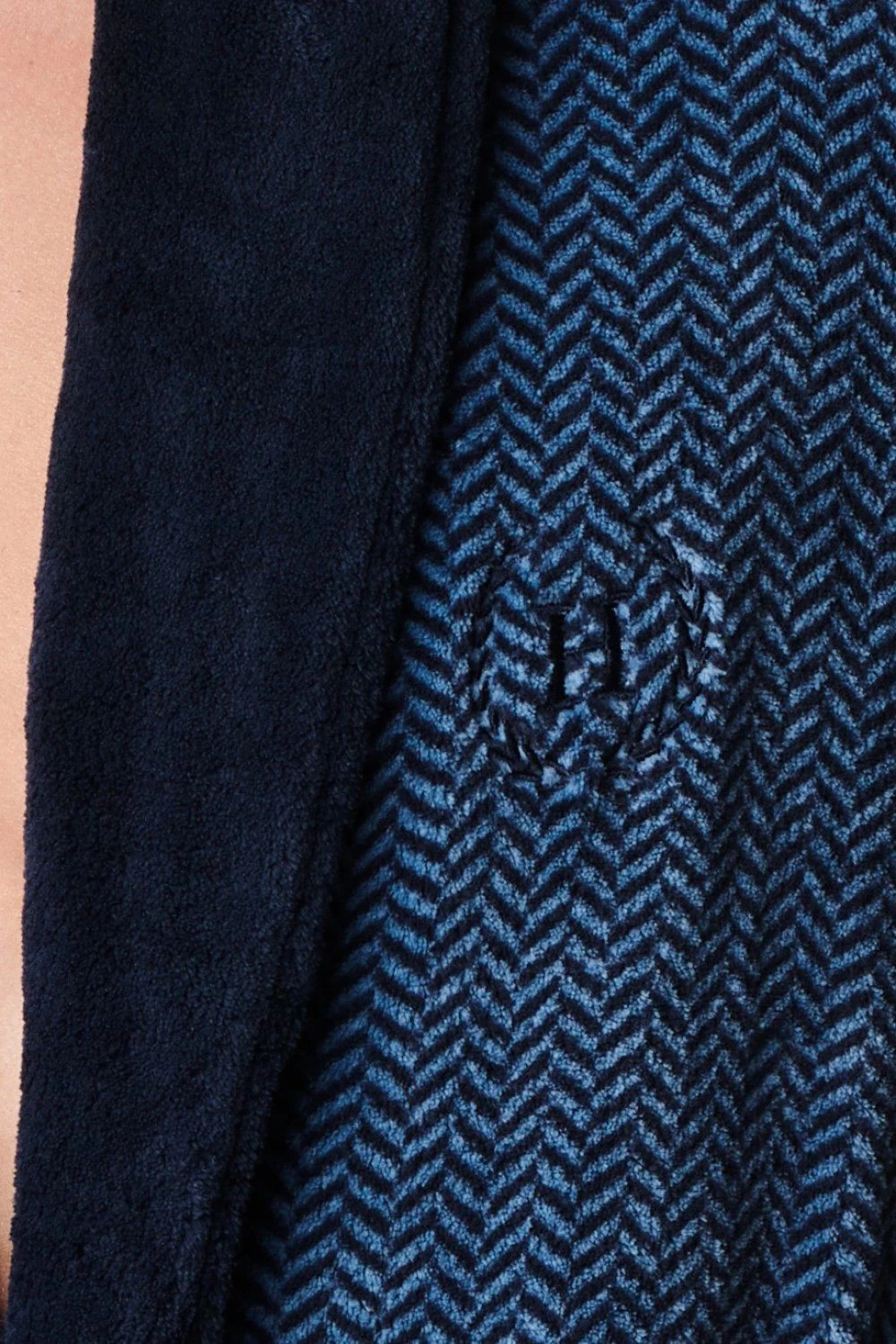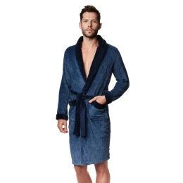 Pánský župan 39392 Mites Henderson - tmavě modré lemování a pásek - délka nad kolena - materiál příjemný na dotek - s kapsamiMateriálové složení: 100% polyester