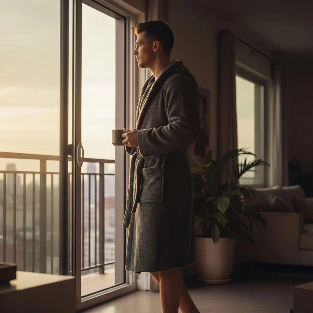 Produkt Pánský župan 43012 Mild - HENDERSON prodáváme v těchto velikostech: M, L, XL, XXL, 3XLa barvách šedá5903972574874, 5903972574881, 5903972574898, 5903972574911, 5903972574904