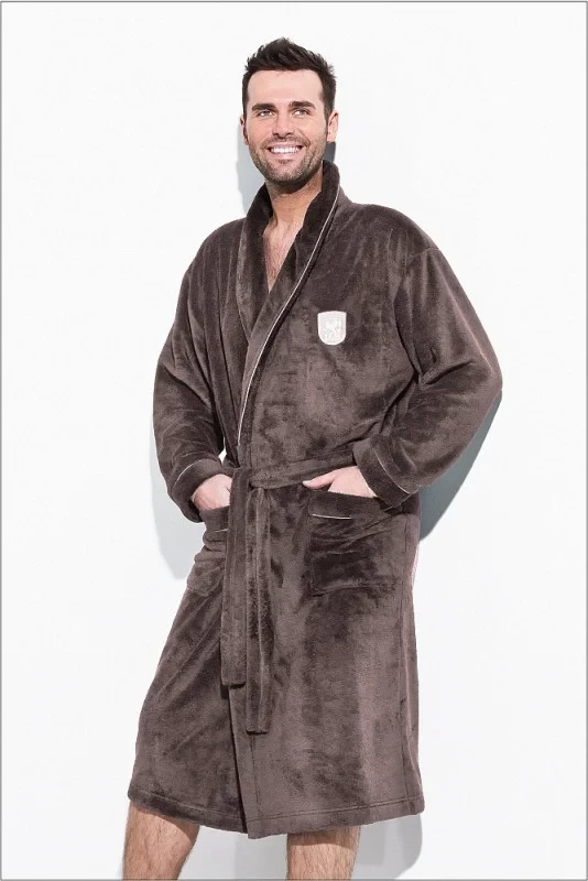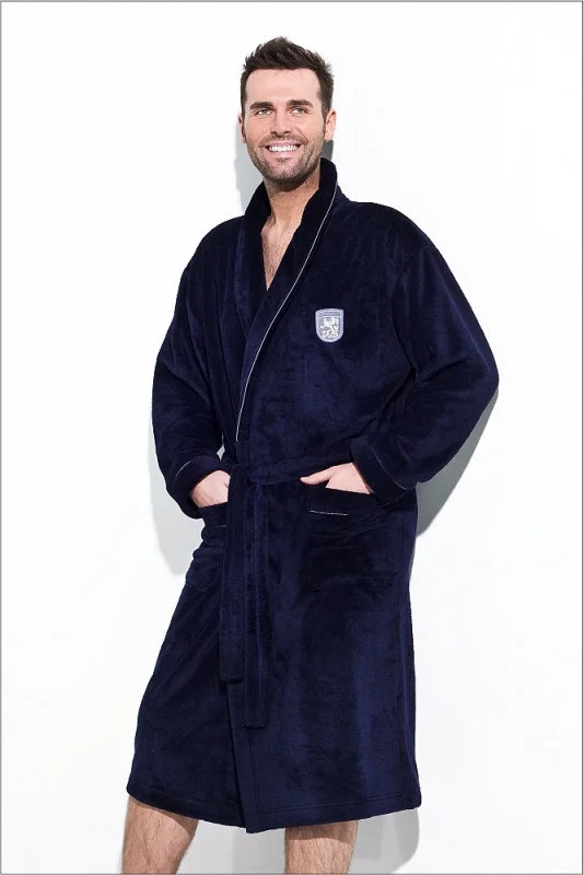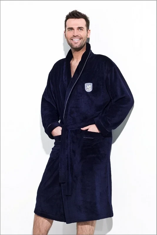 Hřejivý a měkký pánský župan vyrobený z vysoce kvalitních látek. Má kapsy a zavazování v pase. Výrazný límec poskytuje teplo a pěkně ladí s celkovým designem. Má malou výšivku v oblasti hrudníku. Zakončené světlým lemováním. K dispozici v několika barevných provedeních. Velmi praktické a pohodlné.