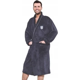 Hřejivý a měkký pánský župan vyrobený z vysoce kvalitních látek. Má kapsy a zavazování v pase. Výrazný límec poskytuje teplo a pěkně ladí s celkovým designem. Má malou výšivku v oblasti hrudníku. Zakončené světlým lemováním. K dispozici v několika barevných provedeních. Velmi praktické a pohodlné.