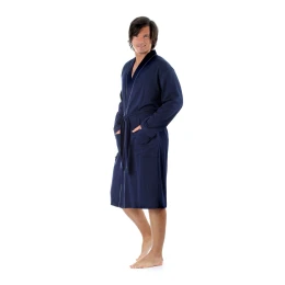 Mladistvý vzhled díky ozdobné paspulce v modrobílé kombinaci lemující celou légu na předním kraji. Kimono střih v délce ke kolenům, dvě dostatečně velké kapsy a pásek. Oblíbená temně modrá barva. Župan Henri je již po několik let oblíbeným kouskem všech věkových kategorií.