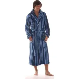 Pánský župan Joe 2132 - Vestis, dlouhý pruhovaný župan v modré barvě, se šálovým lýmcem. Župan má velké kapsy, zavazuje se na pásek.