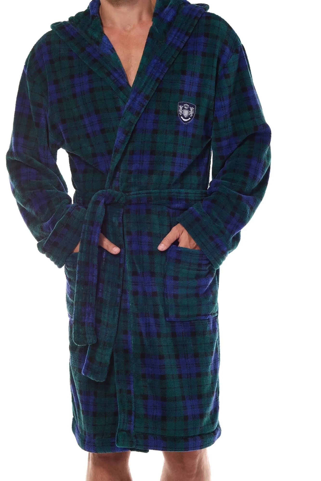 Pánský župan 2455 Hero L&L - tmavě modrá barva - z měkkého kostkovaného materiálu - ozdobná výšivka na levé straně - po stranách jsou našité kapsy - zavazování na pásek - s šálovým límcemMateriálové složení: 100% polyester