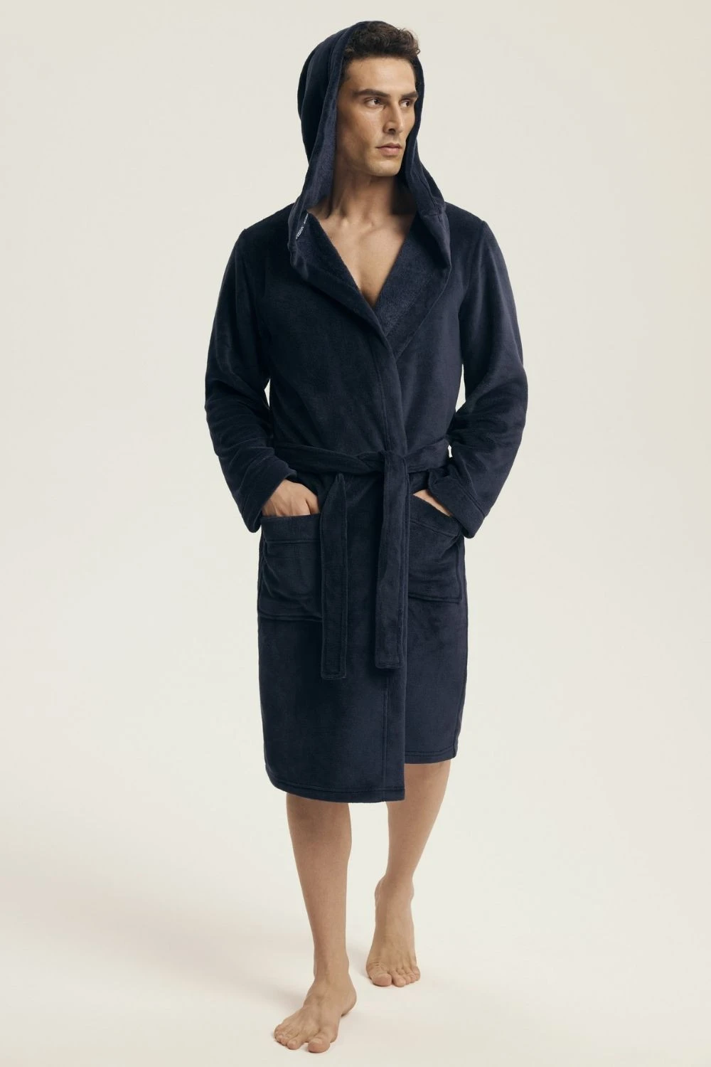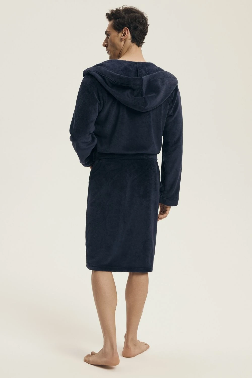 Pohodlný pánský župan volného střihu vyrobený z hladké látky, ideální k nošení doma a během relaxace. Model s kapucí, dlouhým rukávem a kapsami, které spojují pohodlí s praktickým využitím. Župan má délku před kolena a šňůrku, umožňující ideální přizpůsobení postavě. Skvělý také jako elegantní dárek pro blízkou osobu. Rozměry: Velikost M: Prsa 94-98 cm, boky 98-102 cm Velikost L: Prsa 98-102 cm, boky 102-106 cm Velikost XL: Prsa 102-106 cm, boky 106-110 cm Velikost XXL: Prsa 106-110 cm, boky 110-114 cm Velikost XXXL: Prsa 114-120 cm, boky 114-118 cm