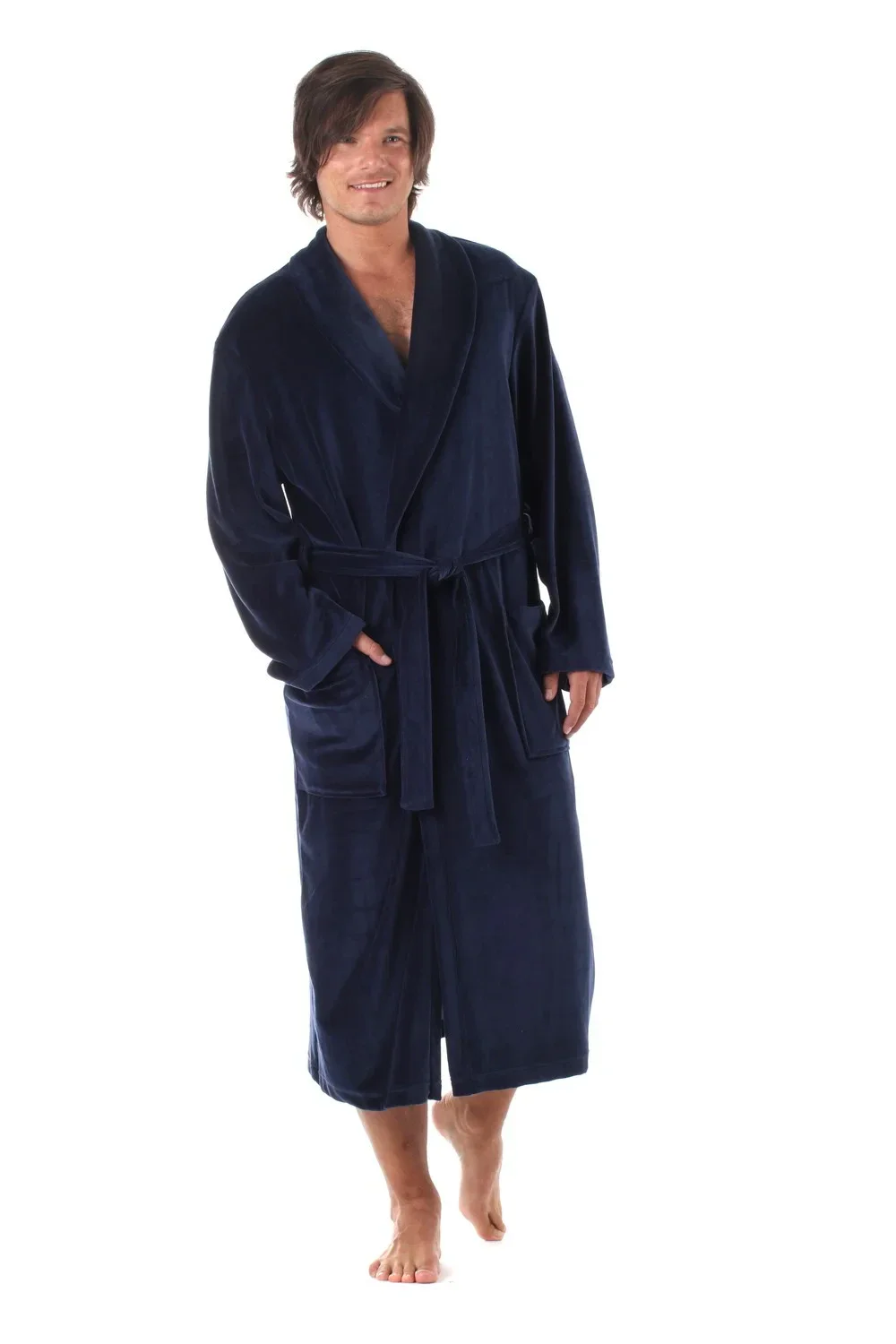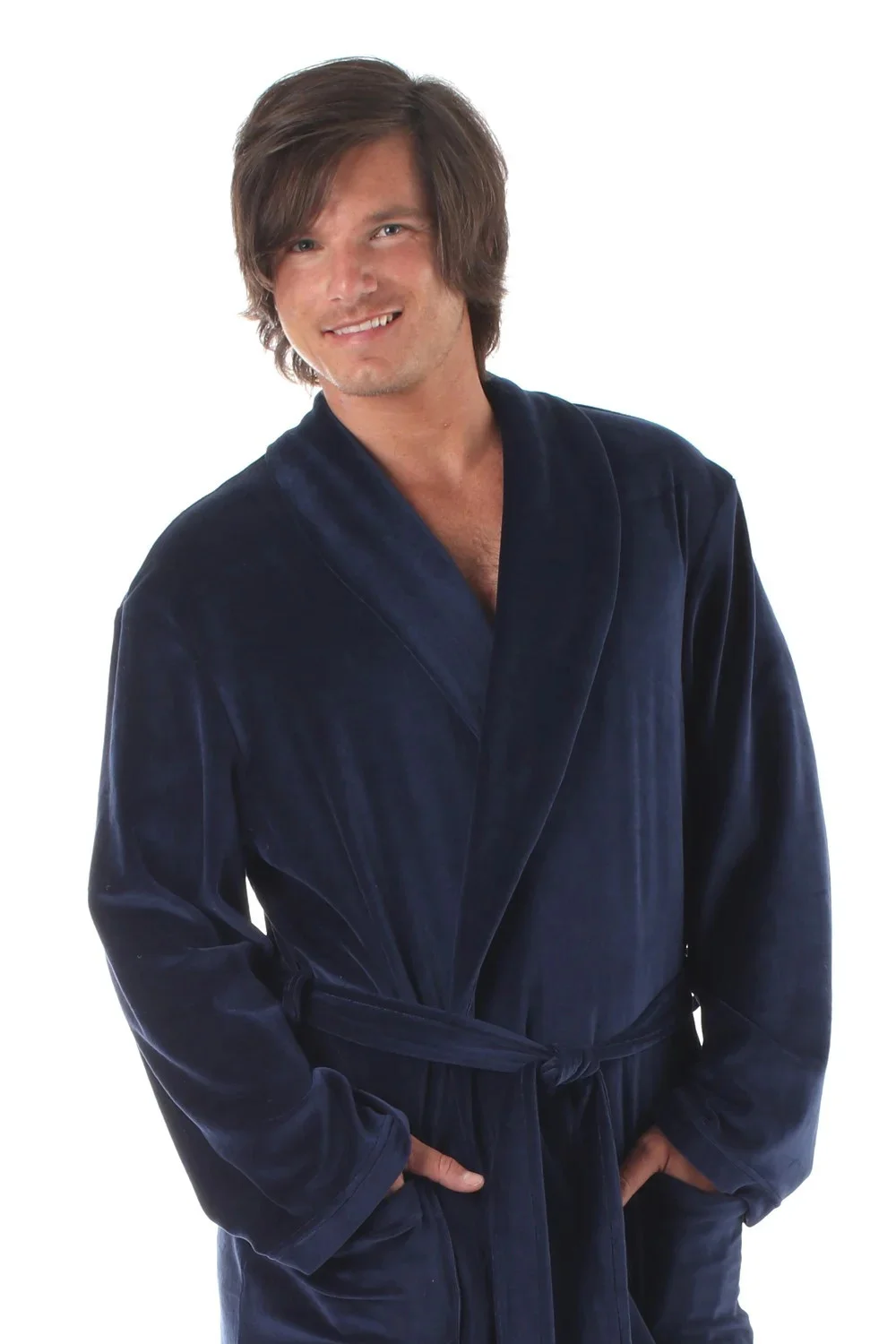 Ideální župan pro domácí relax, večení odpočinek, ale i na cestování nebo do nemocnice. Lehký úpletový sametový velur se přizpůsobí vašim tvarům nijak neomezuje v pohybu. Župan má praktickou délku ke kolenům, dvě prostorné kapsy a pásek na převázání. Šálový límec dává županu elegantní vzhled. Tento klasický župan kombinuje maximální komfort s praktičností a nadčasovým stylem. Při správné péči vám bude sloužit mnoho let.