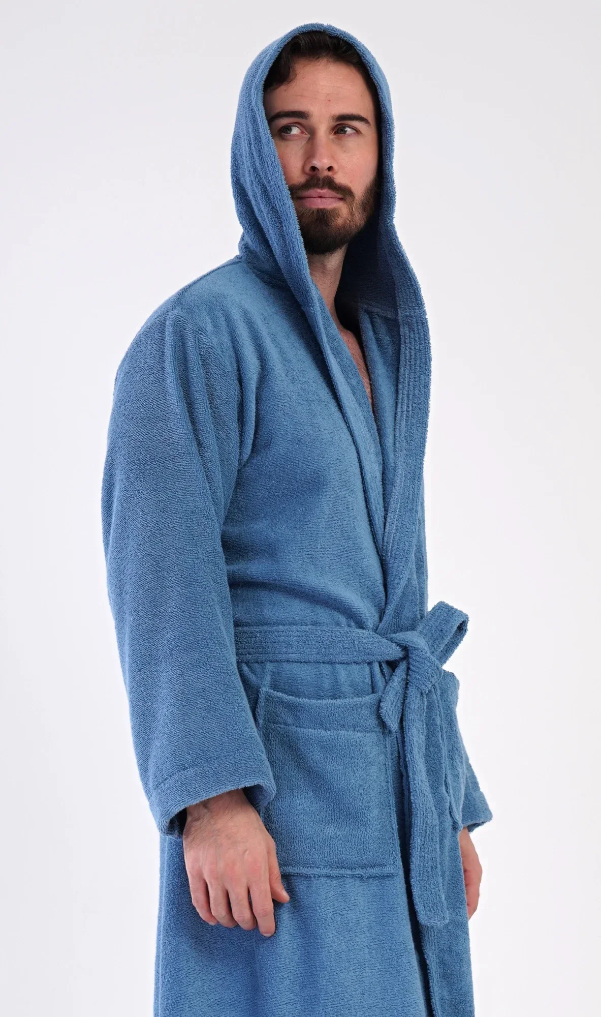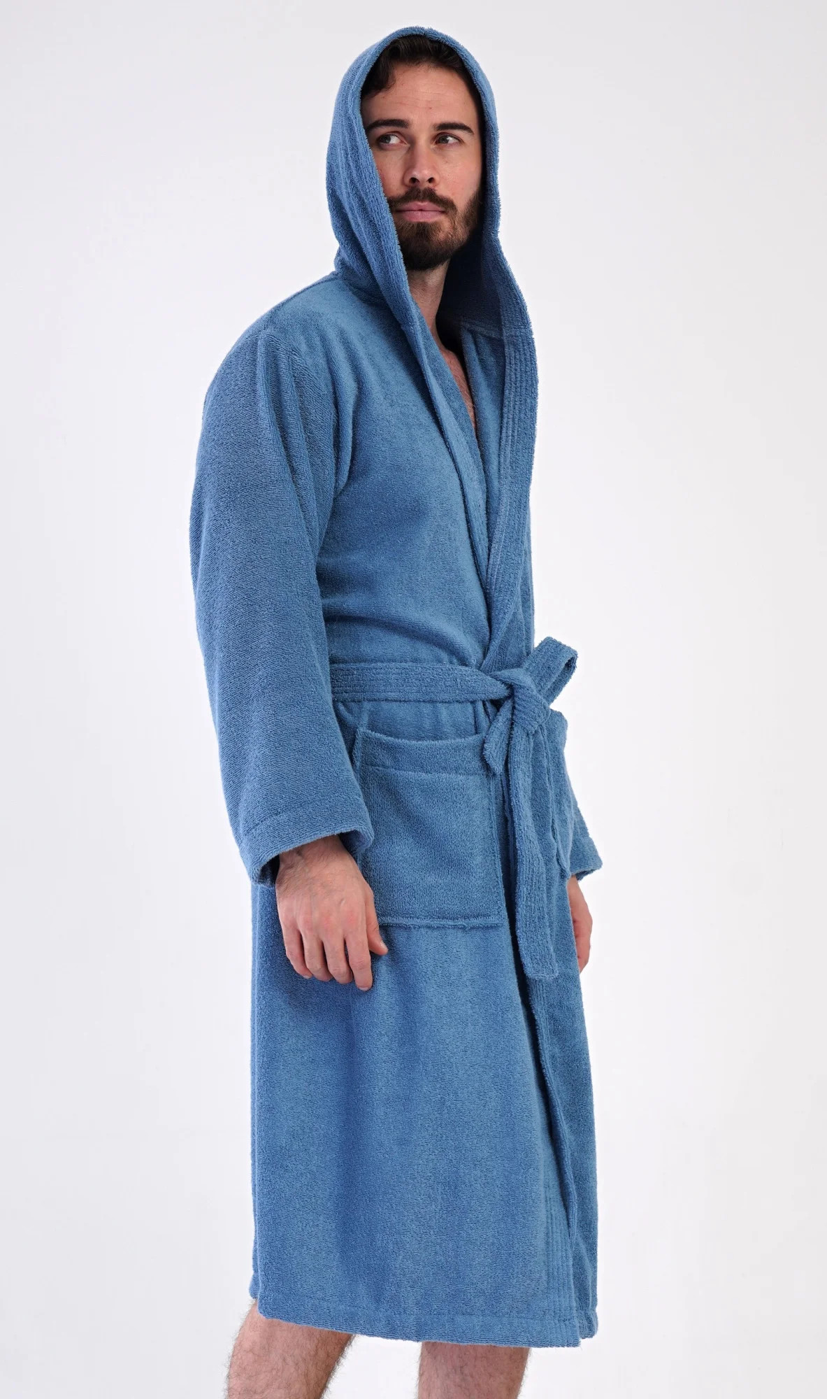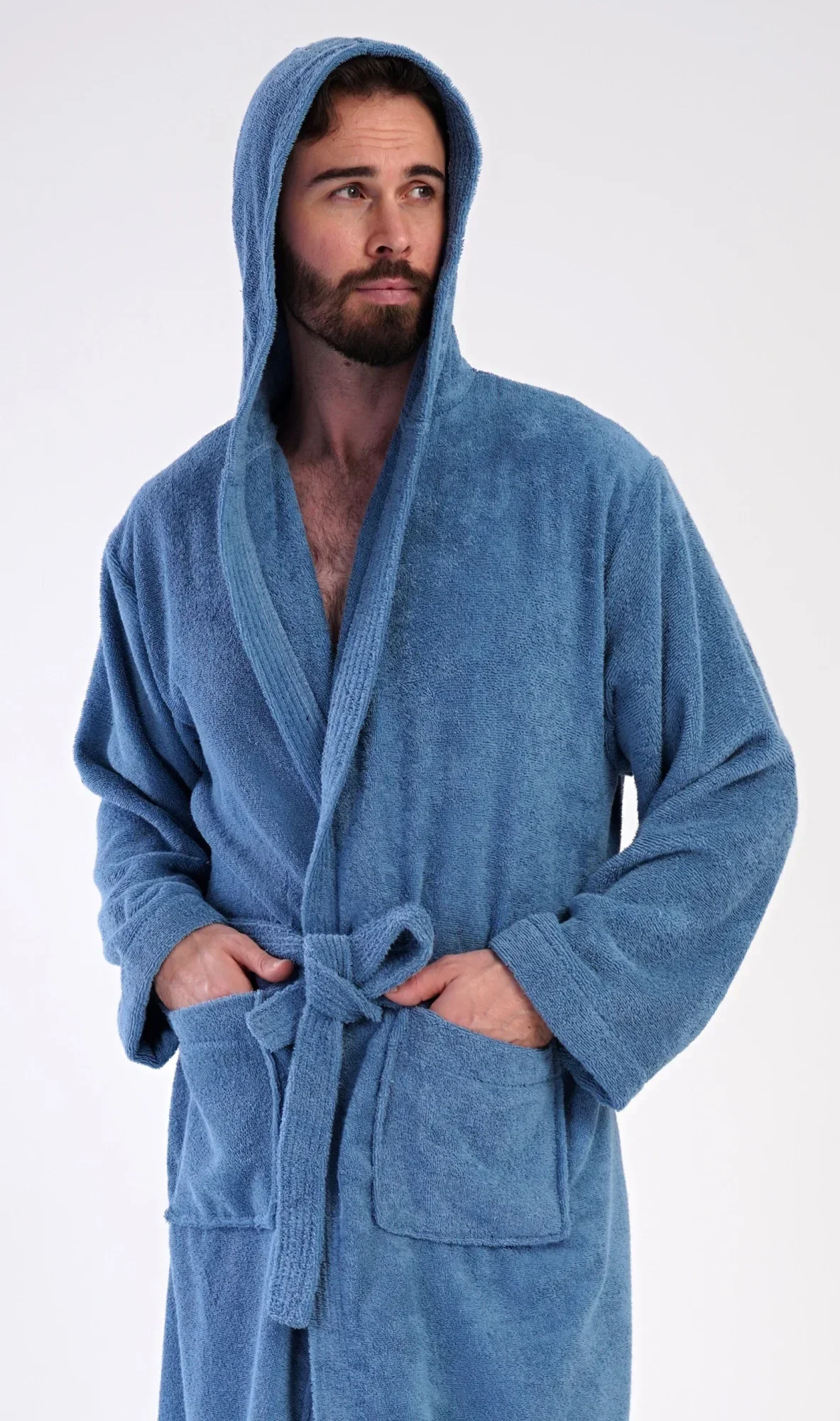 Pánský bavlněný froté župan s kapucí Albert. Pánský dlouhý župan s kapucí a páskem ke stažení je vhodný po koupeli i na povalování se doma na gauči. Froté župan má praktické kapsy, které oceníte při návštěvě wellness. Použitý bavlněný materiál je příjemný a poddajný na dotek.