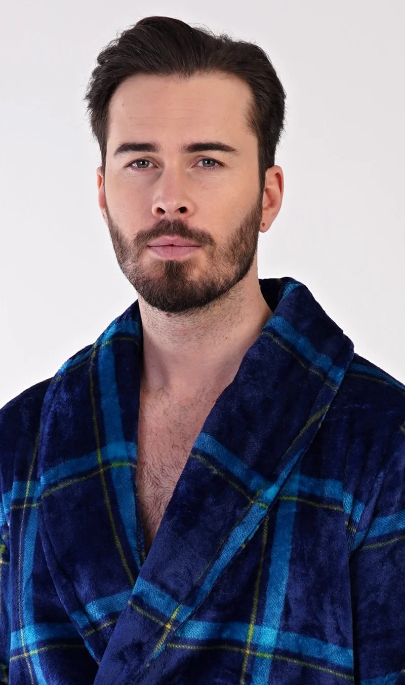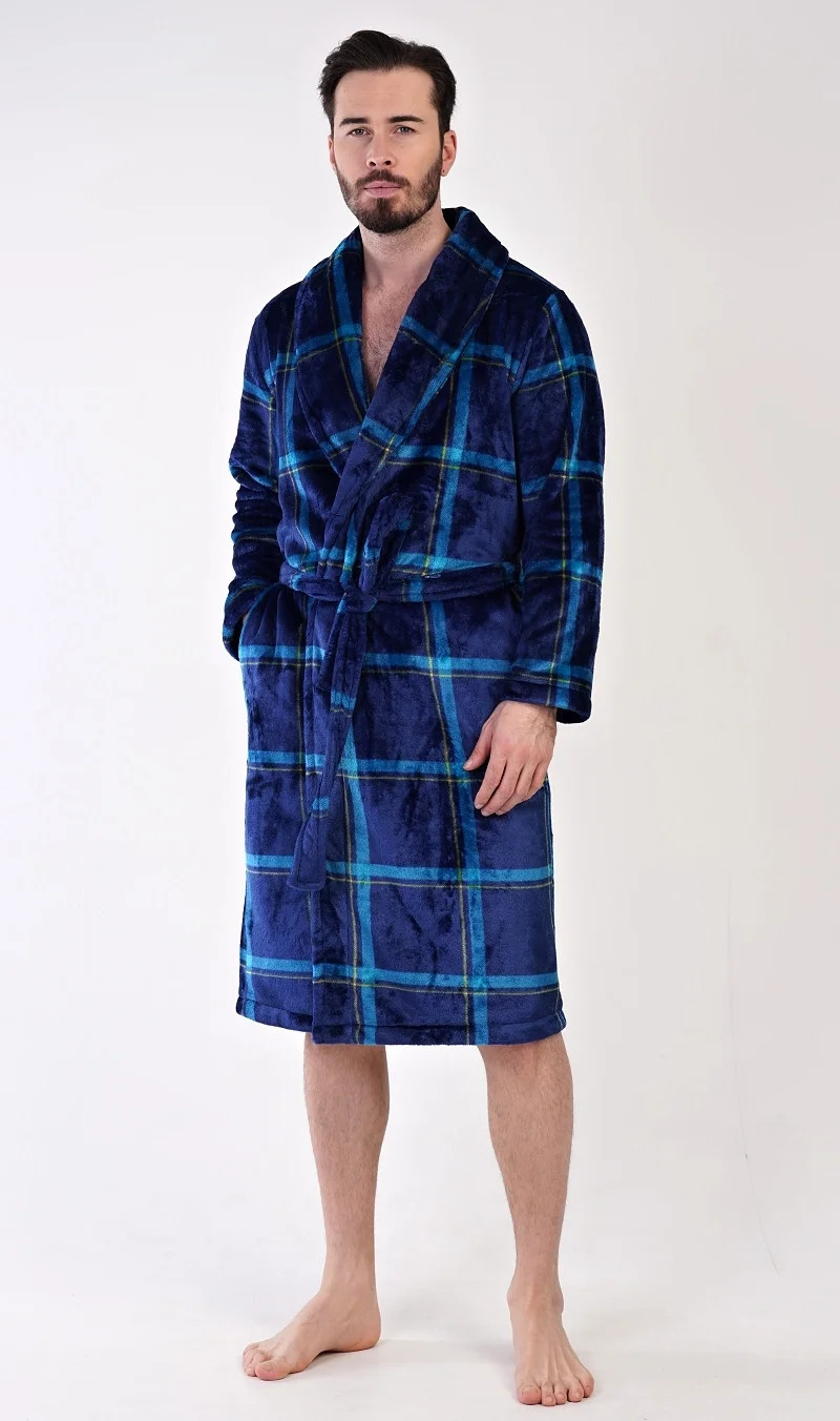 Pánský softový župan se šálovým límcem Richard. Župan má šálový límec, praktické kapsy a pásek ke stažení. Je zdobený motivem kostky v odstínech modré barvy. Použitý softový materiál je jemný a poddajný na dotek. Župan Vás zahřeje cestou z koupelny i při lenošení na gauči, bude to Váš milý společník v chladných dnech.