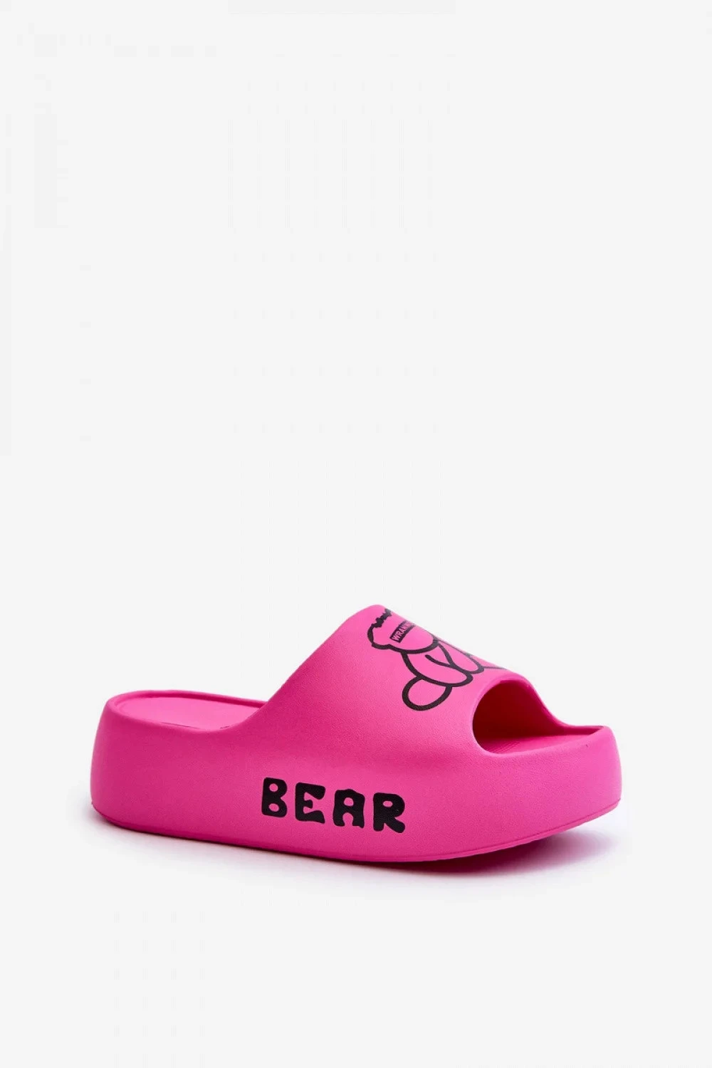 Lehké dámské žabky do bazénu z pěnového materiálu. Stojí na pevné podrážce. Tyto rozkošné žabky zdobí potisk s motivem medvídka, který jim dodává jedinečný nádech. Jsou ideální pro každodenní nošení na nohou a spojují pohodlí a styl v jednom.