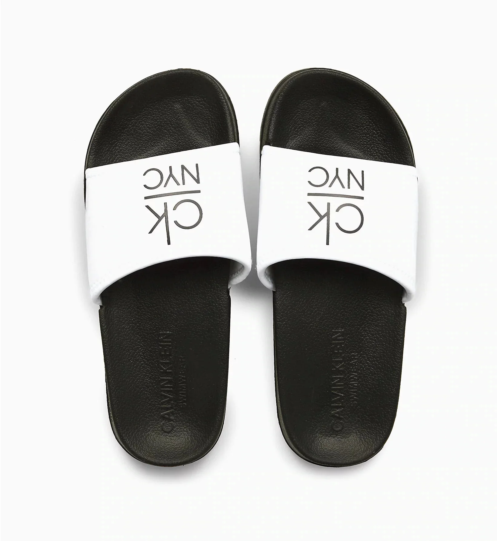 Produkt Pantofle KW0KW01054-YCD černobílá - Calvin Klein prodáváme v těchto velikostech: 43/44, 39/40a barvách černá-bílá8719852307428, 8719852307350