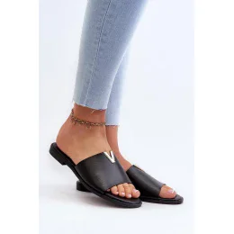Dámské žabky z ekologické kůže. Zlatý prvek dodá vašemu letnímu stylingu šmrnc. Jsou usazené na plochém podpatku. Tento model bude ideální volbou pro mnoho příležitostí!