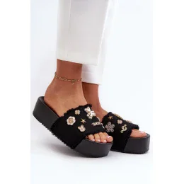 Dámské pantofle s robustní platformou. Jsou zdobeny roztomilými přípínky, které jim dodávají originalitu. Tyto pantofle skvěle ladí jak s letními šaty, tak s kraťasy a vytvářejí módní stylizaci.