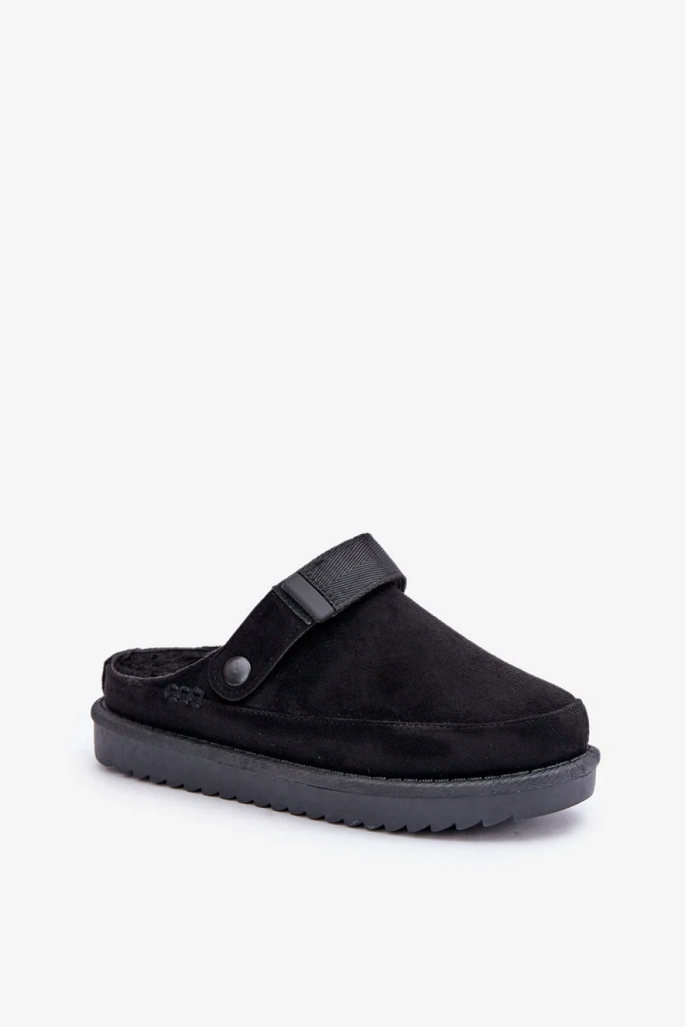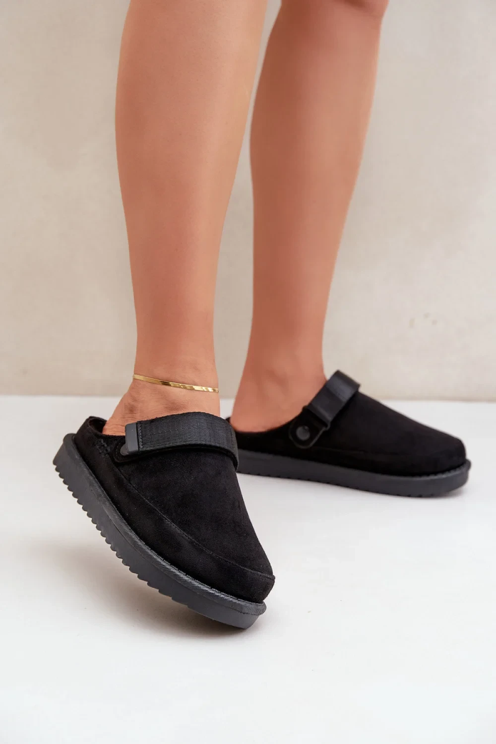 Dámské pantofle na platformě vyrobené z ekologického semiše jsou stylovou volbou na chladné dny. Vnitřek je vyložený měkkým kožíškem, který zajistí teplo a pohodlí. Model má suchý zip, co zajišťuje lepší přizpůsobení a brání sklouznutí nohy. Skvěle se osvědčí jak doma, tak venku!