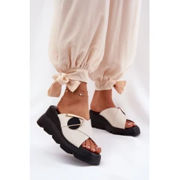 Elegantní dámské sandály z přírodní kůže jsou skvělou volbou na teplé dny. Umístěné na platformě poskytují pohodlí a stabilitu. Model se vyznačuje geometrickou aplikací, která dodává moderní charakter. Měkká stélka zaručuje pohodlí po celý den, čímž tyto sandály dělají ideálním doplňkem k letním stylizacím, spojující eleganci s funkcionalitou.