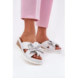 Dámské klínové sandály vyrobené z vysoce kvalitní přírodní kůže. Vsazené na klíně. Na přední části boty je jemný ozdobný květ, který dodává zvláštní charakter. Velmi měkká stélka poskytuje pohodlí po celý den, čímž tyto sandály budou ideální volbou pro letní outfit, kombinující funkčnost s módním vzhledem.