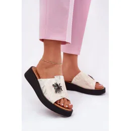 Dámské žabky značky Vinceza vyrobené z přírodní kůže jsou elegantní volbou pro letní dny. Tento model je zdoben jemnou ozdobnou broží, která jim dodává výjimečný charakter. Díky jemné platformě poskytují pohodlí a stabilitu po celý den. Kůží vložka zajišťuje pohodlí nošení a dělá z těchto sandálů skvělé doplňky elegantních stylizací na teplé dny.