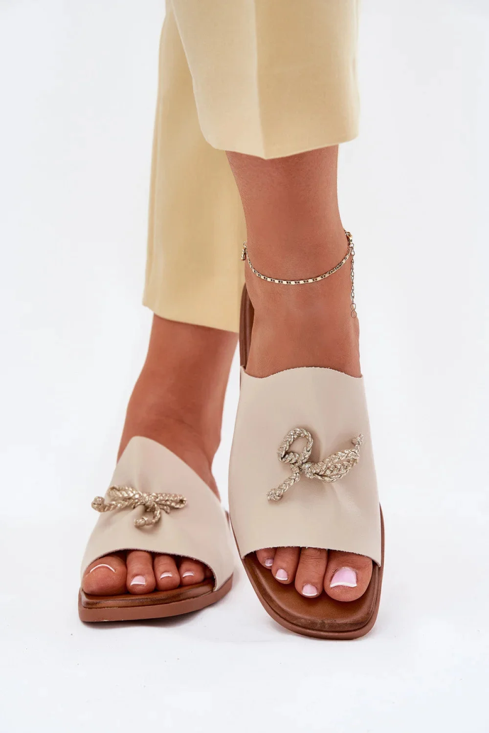 Dámské sandály z ekokože s plochým podpatkem jsou elegantní volbou na teplé dny. Tento model se vyznačuje decentním ozdobným šněrováním, které jim dodává jedinečný charakter. Jejich klasický střih zajišťuje, že se skvěle hodí jak k šatům, tak k látkovým kalhotám, vytvářející stylový a pohodlný vzhled.