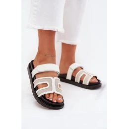 Dámské sandály vyrobené z kombinace ekokože a textilního materiálu. Umístěné na platformě. Pásek s suchým zipem umožňuje snadné přizpůsobení noze, zaručující pohodlí po celý den. Skvělé na letní dny, skvěle se hodí k volným stylizacím.