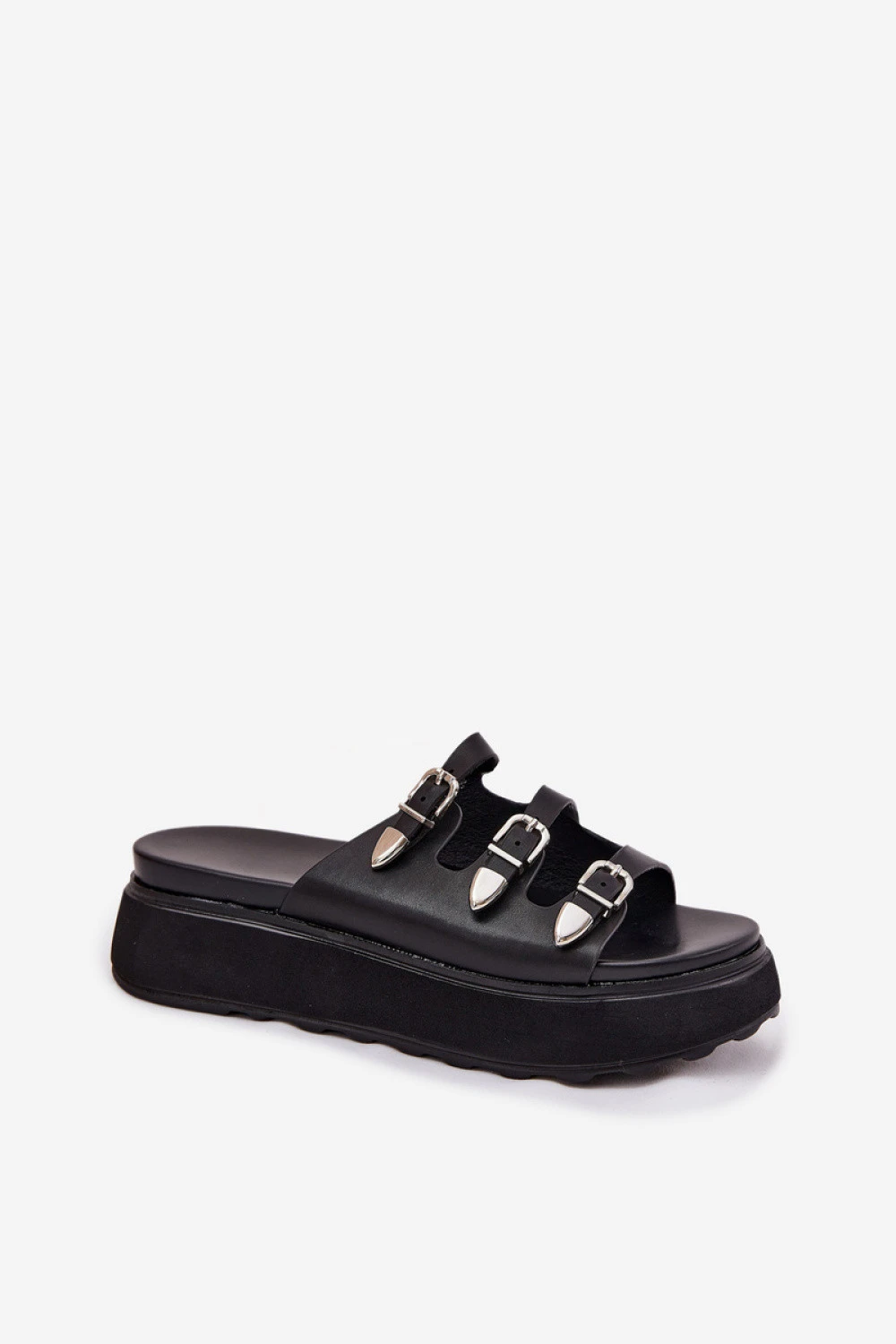 Dámské sandály z ekokože, osazené na platformě, jsou spojením pohodlí a stylu. Model se vyznačuje třemi tenkými, nastavitelnými pásky s přezkami, které umožňují ideální přizpůsobení k noze. Měkká stélka zajišťuje pohodlí po celý den a moderní design zajišťuje, že sandály skvěle ladí s letními styly. Ideální na každý den, spojují funkčnost s módním vzhledem.