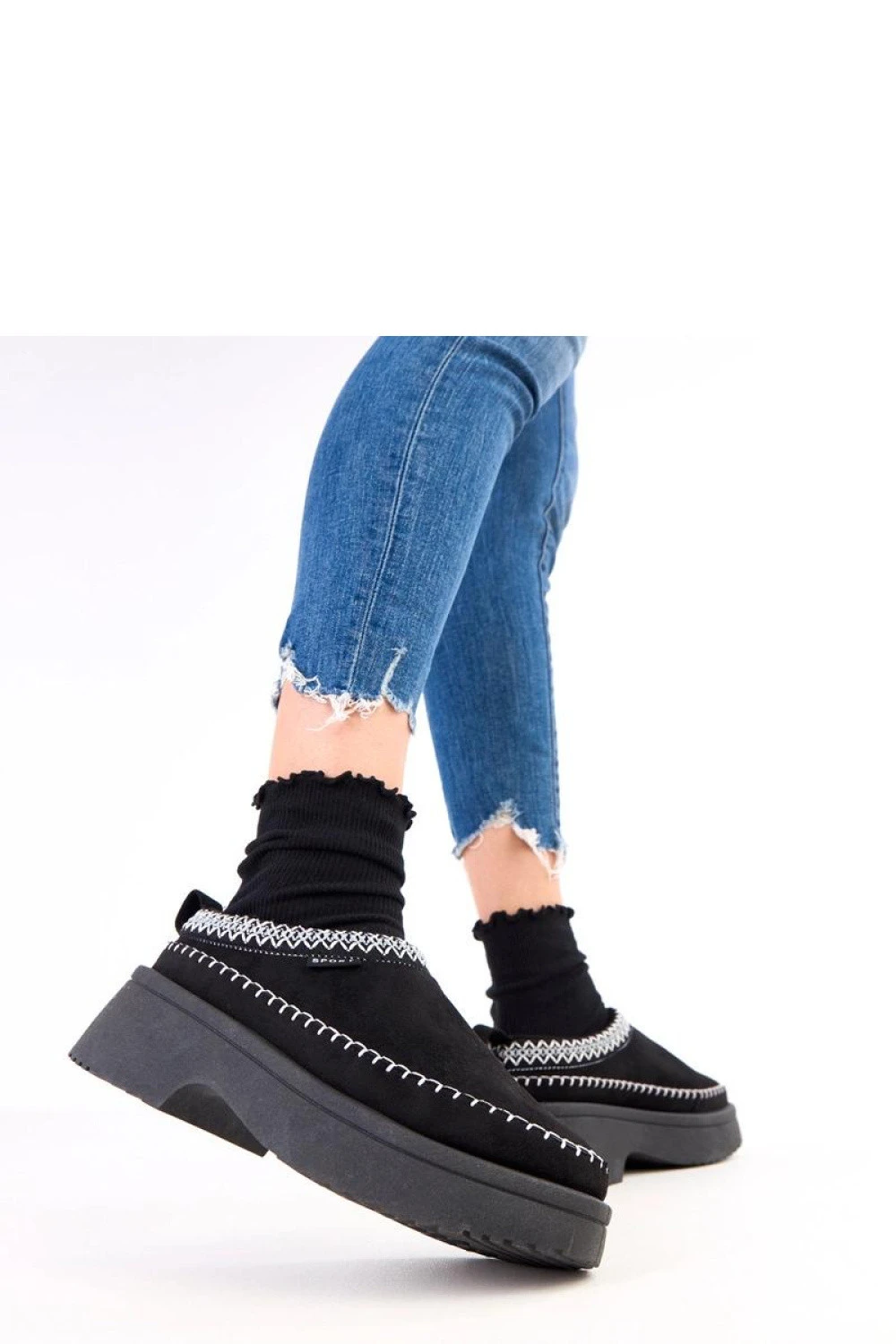 Dámské slipové pantofle s ozdobným vyšívaním, kombinující pohodlí s elegantním akcentem. Vyrobené z ekologického semiše, působí stylově a jsou příjemné na dotek. Měkká textilní stélka zajišťuje pohodlí při nošení, a pryžová platformová podrážka o výšce 5,5 cm dodává stabilitu a lehce zvedá postavu. Kulatý špičatý nos podtrhuje klasický charakter tohoto modelu, ideálního na každodenní nošení.