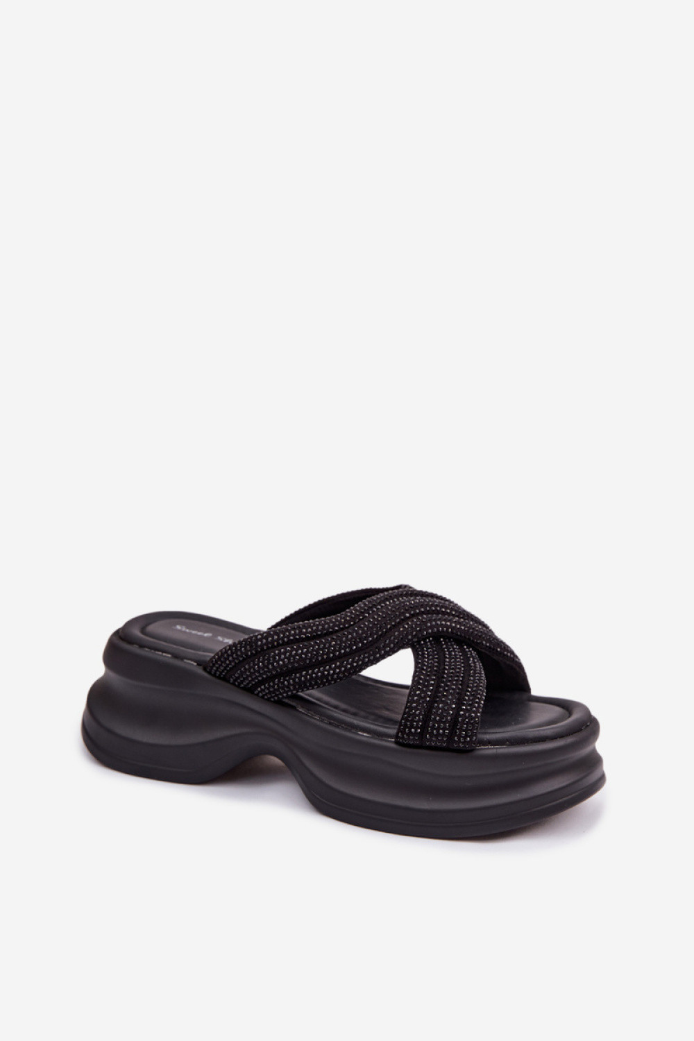 Dámské sandály na masivní platformě jsou módní a pohodlná volba na letní dny. Přední část zdobí dva se prolínající popruhy s efektním, lesklým zdobením, které modelu dodávají výrazný charakter. Měkká stélka zvyšuje pohodlí nošení. Jsou to stylové sandály, které skvěle doplní každodenní a dovolenkové outfit.