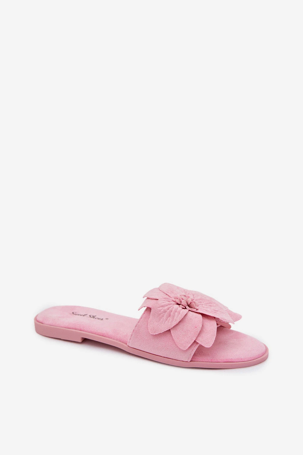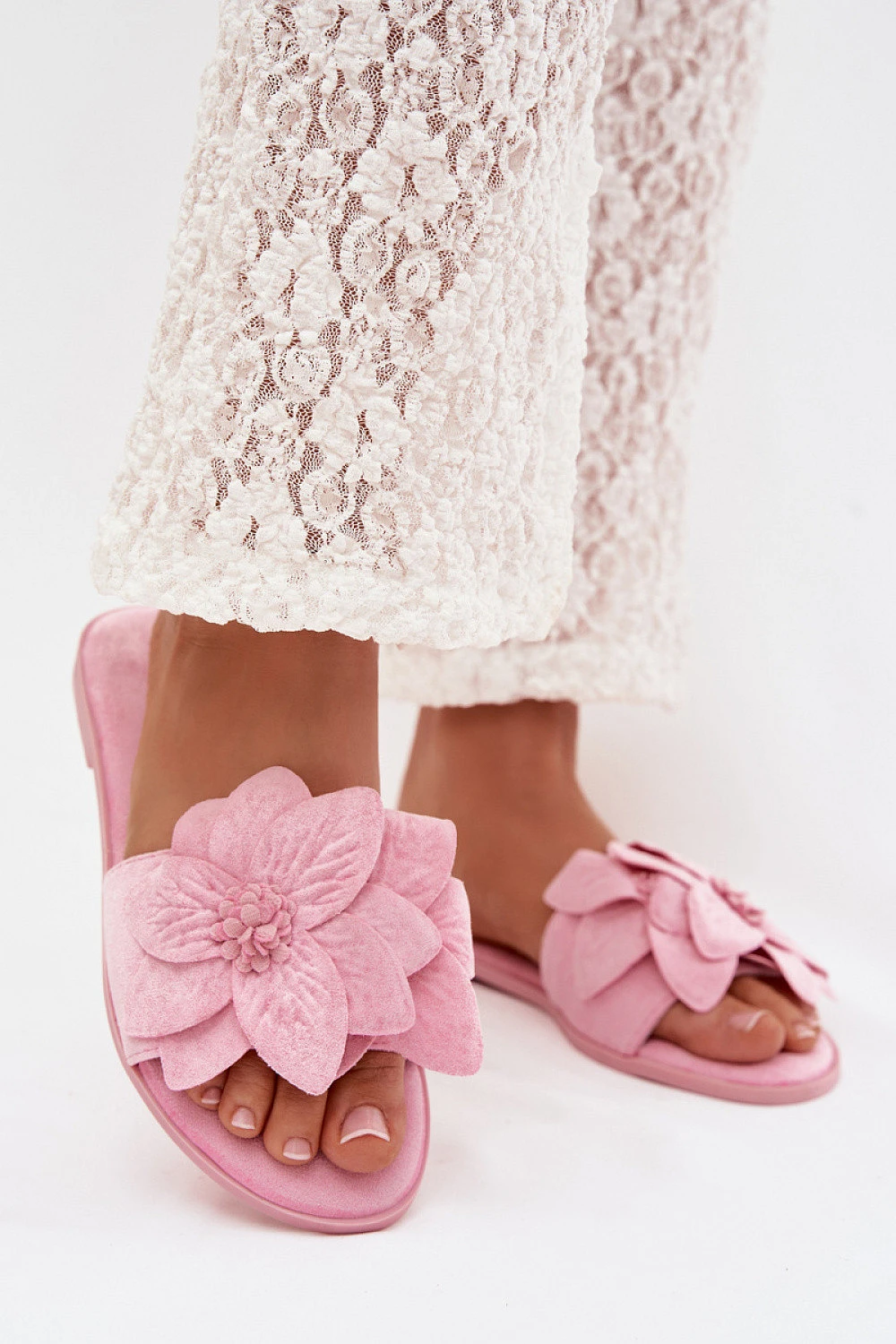 Dámské pantofle vyrobené z ekosuede jsou lehkou a pohodlnou volbou na teplé dny. Plochá podrážka poskytuje pohodlí během chůze, což z nich činí skvělý model pro každodenní použití. Boty se vyznačují dekorativními květinami umístěnými na pásku, které jim dodávají ženský šarm a jemnou eleganci. Měkká stélka zvyšuje pohodlí nošení a dbá na pohodlí nohou po celý den. Jsou to stylové pantofle, které skvěle doplní letní outfit.