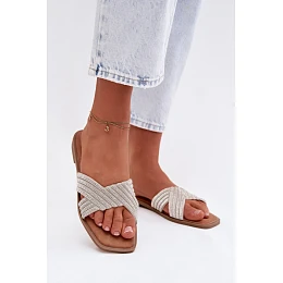 Dámské ploché pantofle jsou stylovým návrhem na teplé dny. Pásek ozdobený zirkony přitahuje pozornost a dodává celku jemný lesk. Jednoduchý střih zajišťuje pohodlí při nošení, díky čemuž se pantofle skvěle hodí jak pro každodenní tak i pro elegantnější letní outfity.