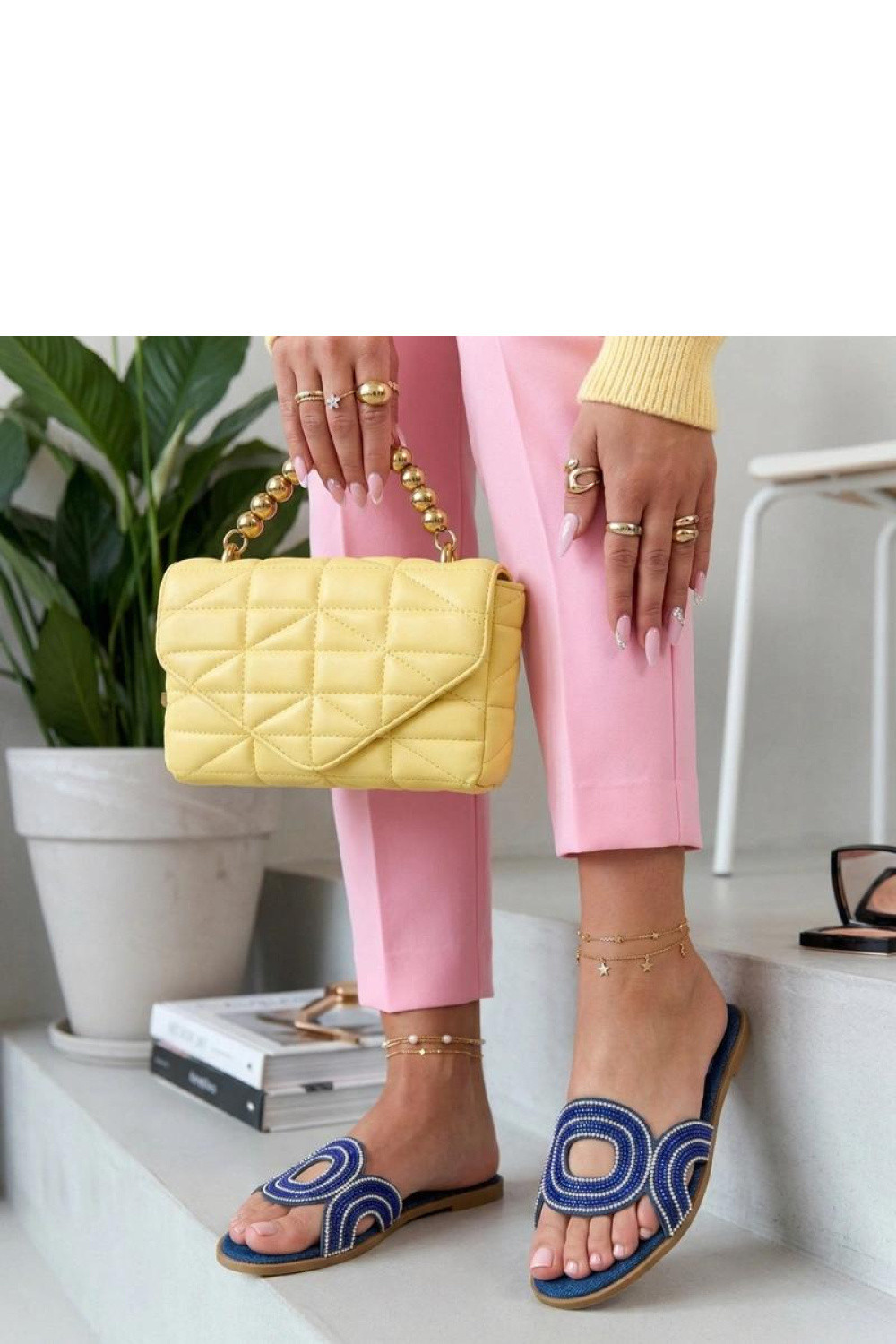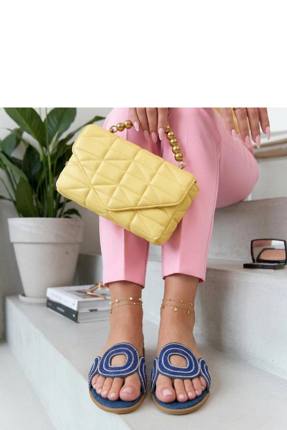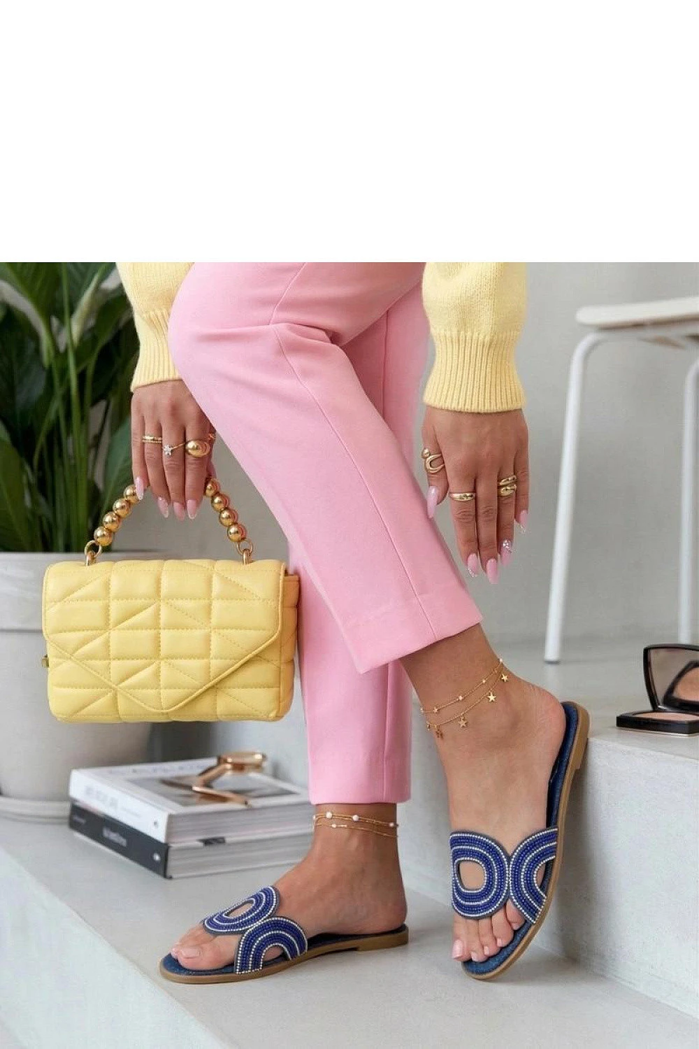 Jemné pantofle s ozdobnými zirkony jsou elegantní nabídkou pro ženy, které ocení pohodlí spojené s jemným leskem. Vyrobené z vysoce kvalitní ekologické kůže jsou lehké, pohodlné a snadno se udržují. Nízký podpatek výšky 1 cm zajistí stabilitu a pohodlí při chůzi, a zasouvací konstrukce usnadňuje rychlé obutí a skvěle sedí na noze. Lesklé zirkony na přední části dodávají pantoflím výjimečný charakter, přinášející módní a elegantní akcent do letních outfitů. Jedná se o univerzální model, který se hodí jak na každodenní vycházky, tak na neformální setkání.