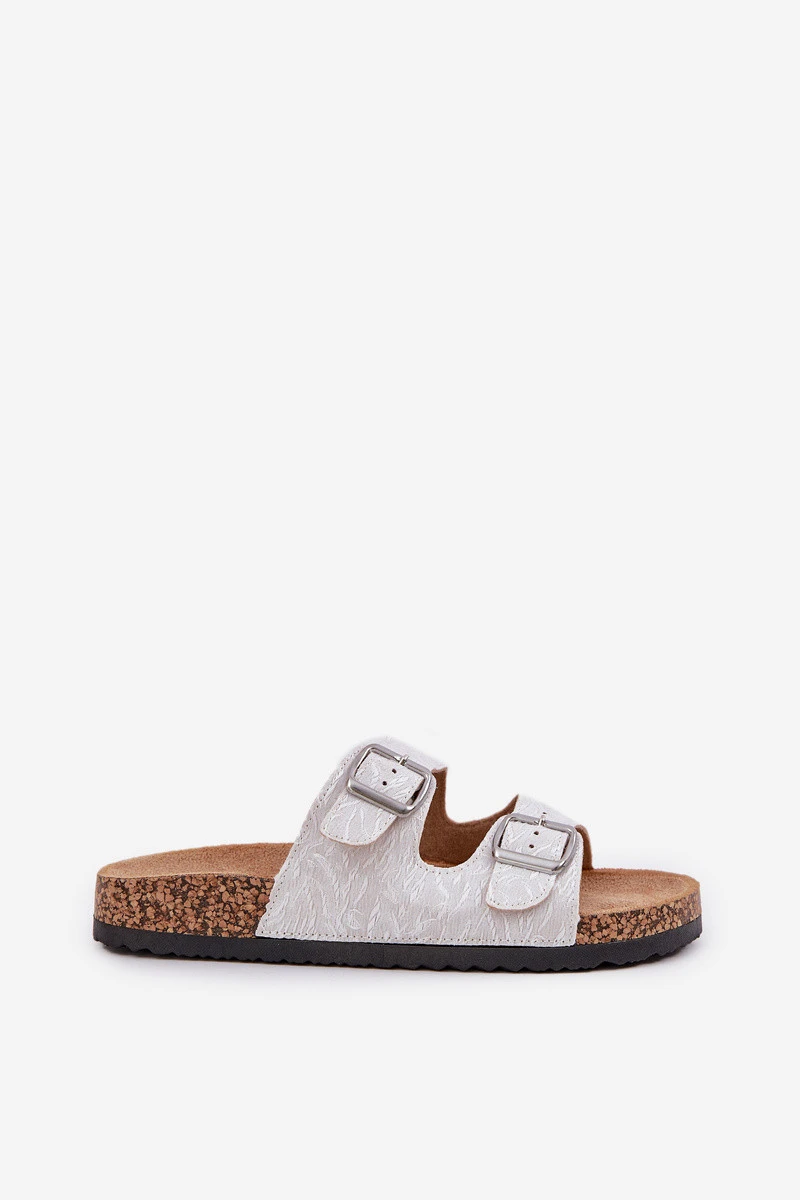 pantofle na korkové podrážce s přezkami světle šedé model 21685392 - Boto
