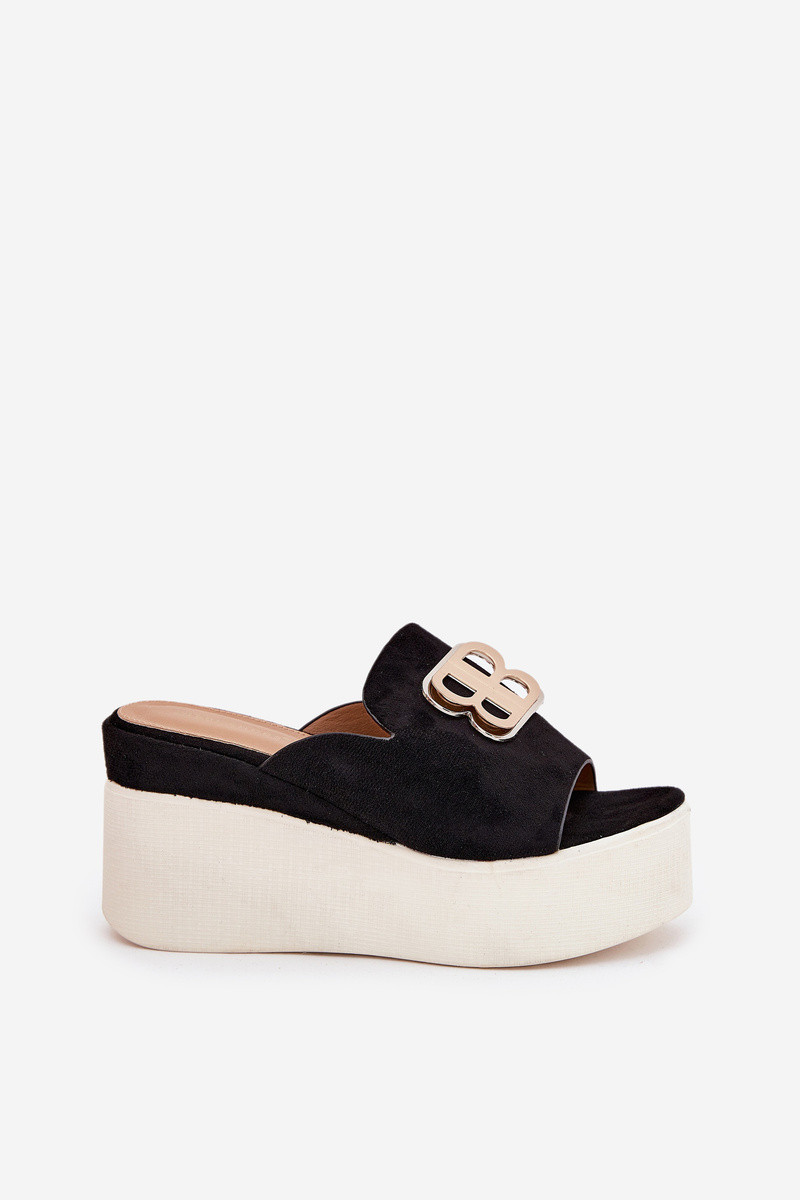 Pantofle Na Platformě A Klínu S Dekorací Černé Tanonea