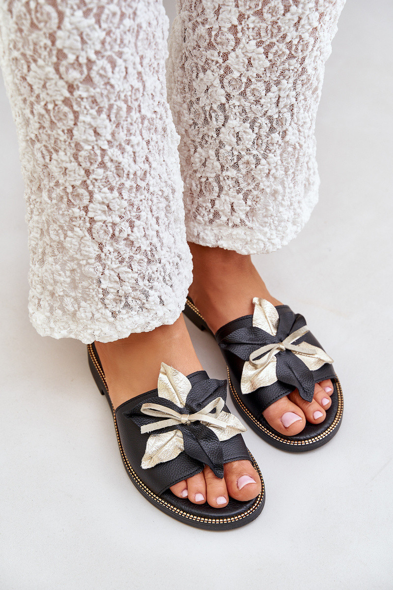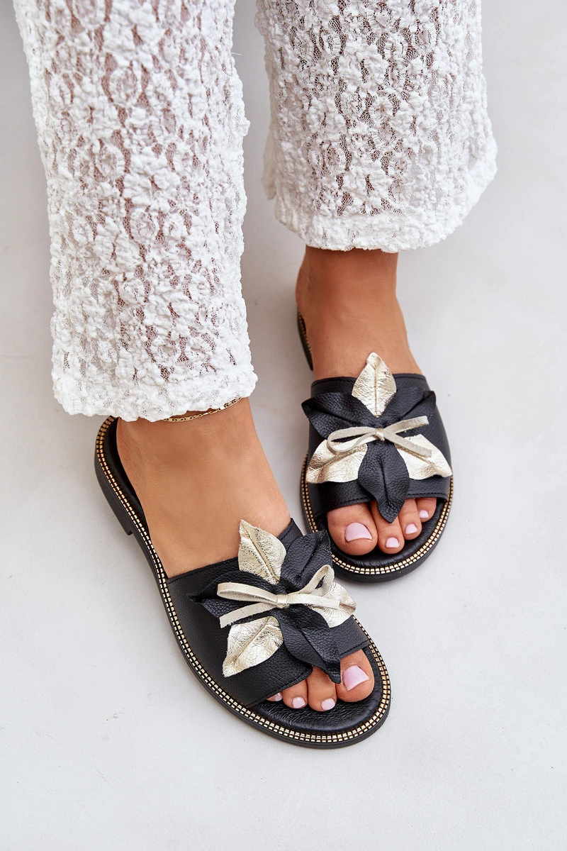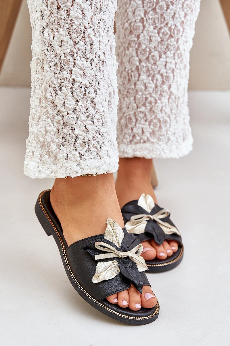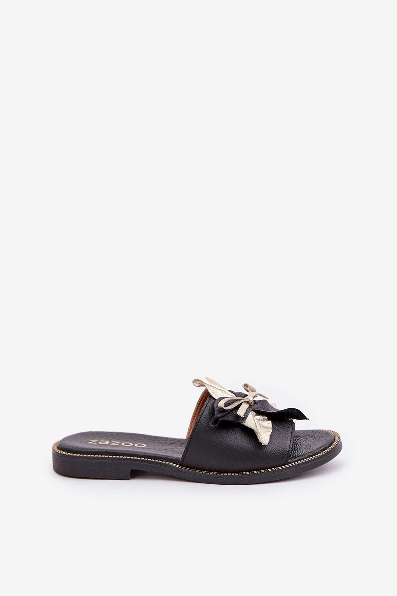Pantofle S Dekorací Přírodní Kůže Zazoo model 21682375 Černé - Boto