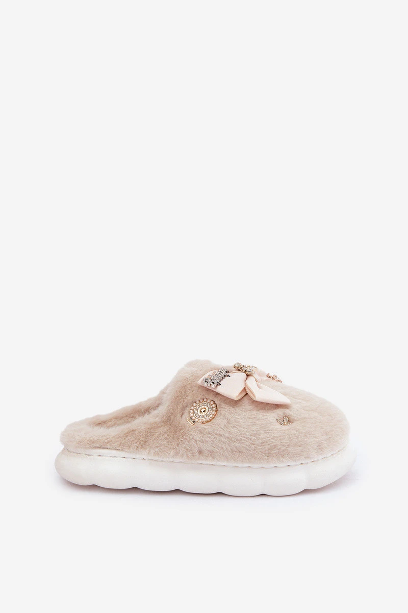 Pantofle S Mašlí A Ozdobami Béžové model 21680837 - Boto