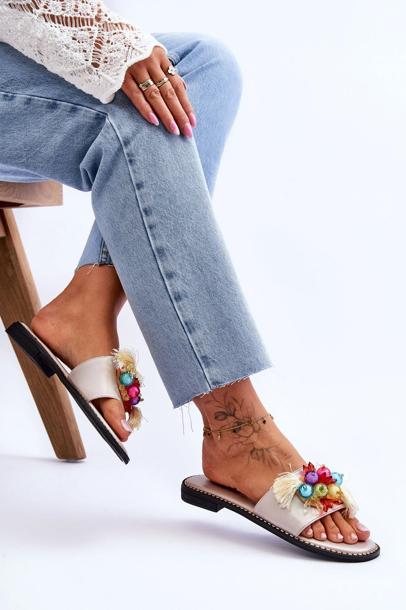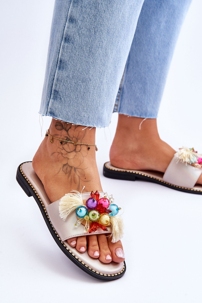 Pantofle s ozdobnými korálky S.Barski KV-2775-47 Nude
