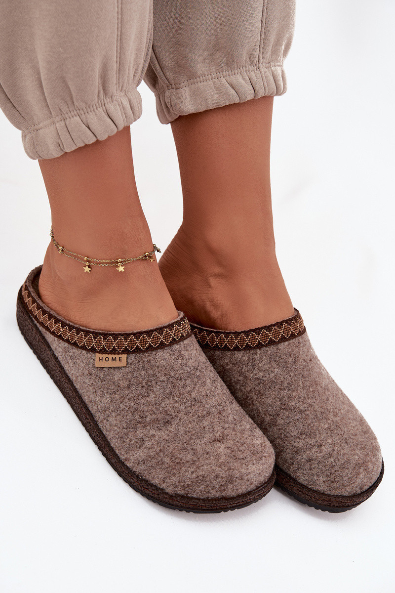 pantofle s výšivkou tmavě béžové model 21714608 - Inblu