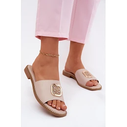 Pantofle z přírodní kůže Ploché podpatky Nude model 22133746 - S.Barski