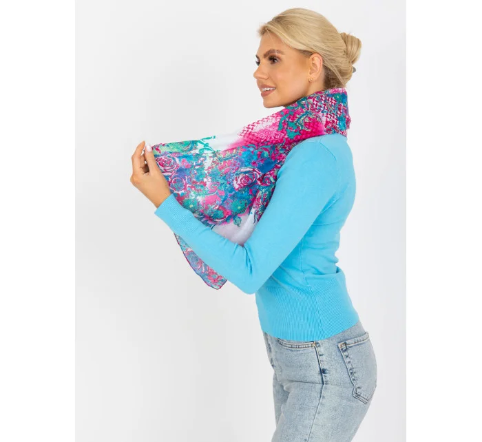 Dámská bavlněná šála s fuchsiově bílýmvzorem.