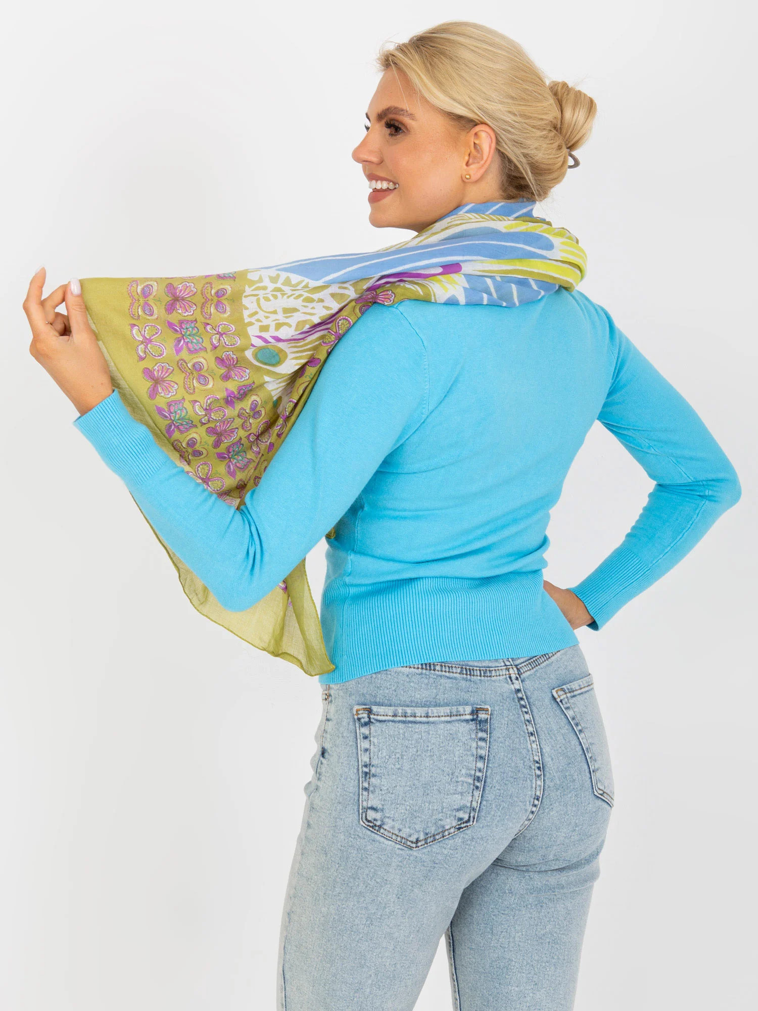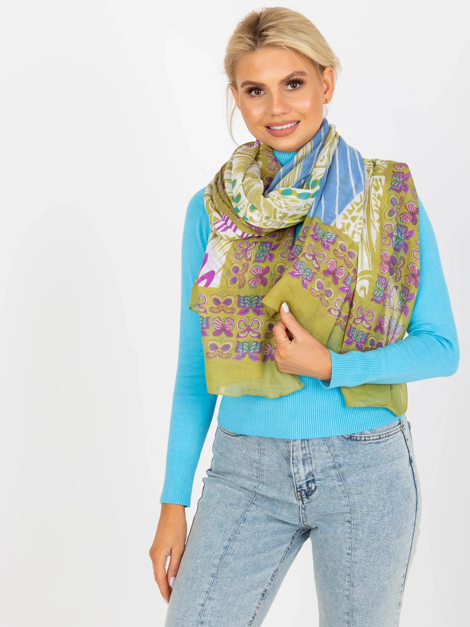 Zelená bavlněná šála s potiskem.