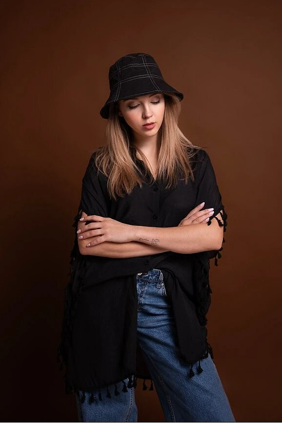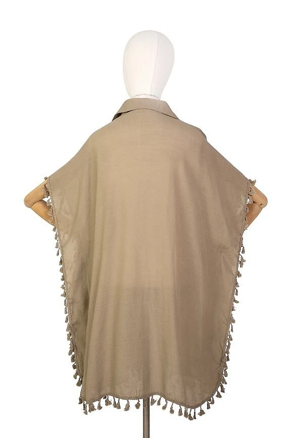 - zapínání na knoflíky, zakončené jemnými střapci