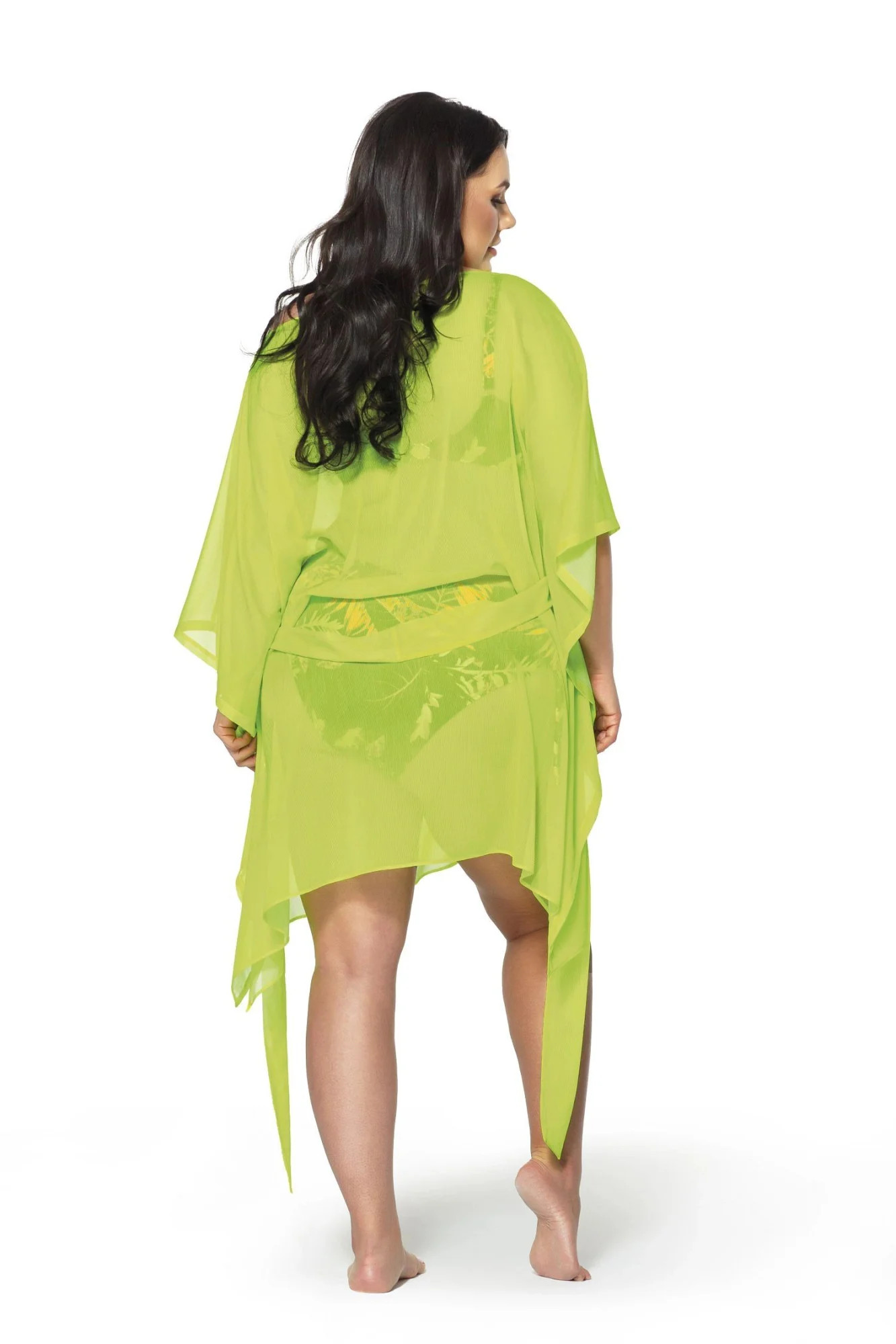 Pareo šátek 021 AVA - žlutá barva - z prodyšné látky - výstřih ve tvaru V - volný střih - vázání v pase