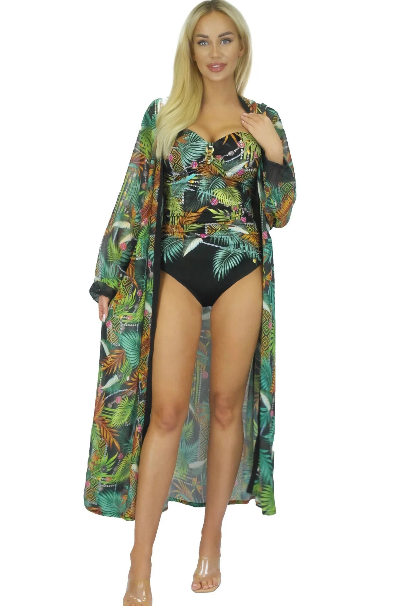 Pareo šátek 14D81SZ 35 SELF - černá barva - z jemné vzdušné látky - se vzorem - odolná proti UV záření - nemačkavý materiál - vázání v pase