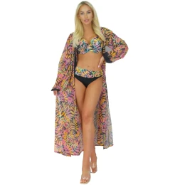 Pareo šátek 14D81SZ 38 SELF - černá barva - z jemné vzdušné látky - se vzorem - odolná proti UV záření - nemačkavý materiál - vázání v pase