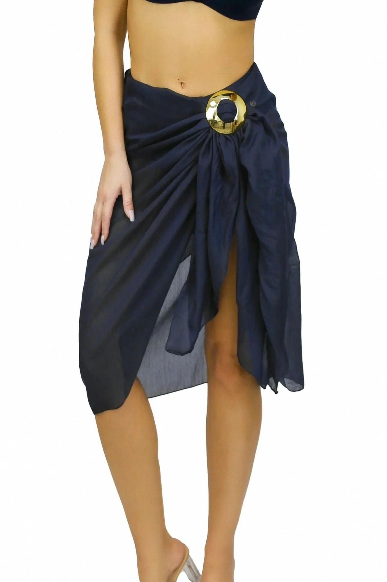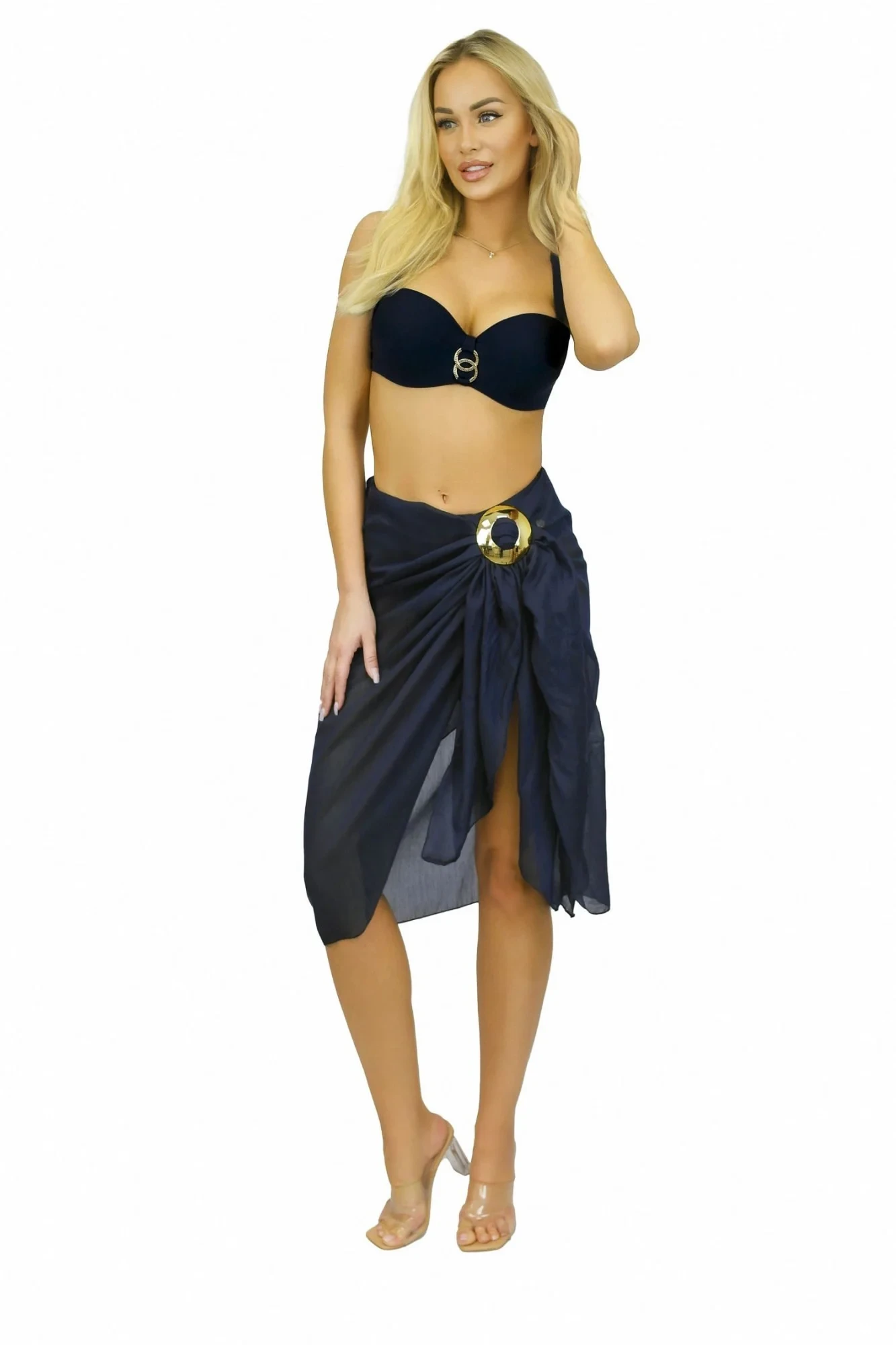 Pareo šátek D95CH1 14 SELF - tmavě modrá barva - z jemné vzdušné látky - odolný proti UV záření - nemačkavý materiál - zavazování se třpytivou sponou